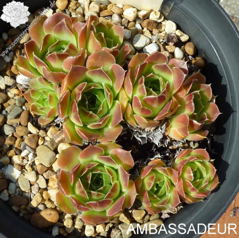 kleine Rosetten, spatelige Blätter, helles Grün, hellbraune Spitzen.