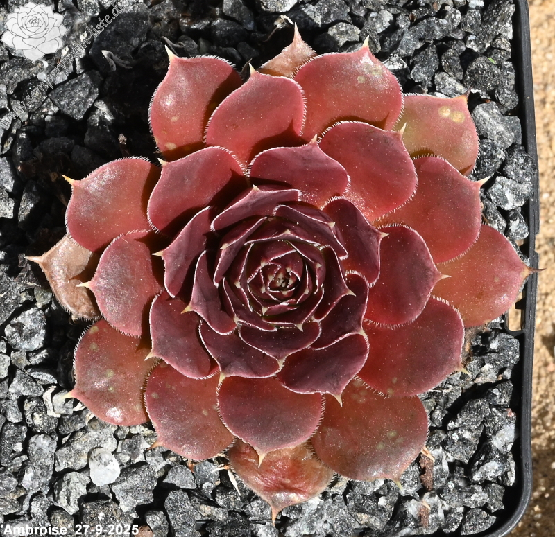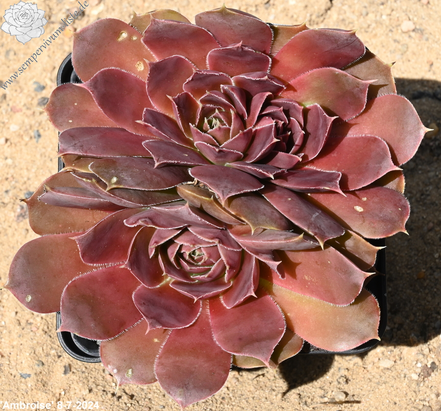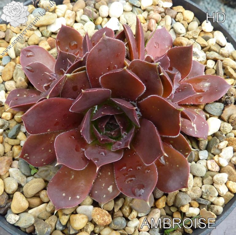 große Rosetten, Blätter verkehrt eiförmig, lang bespitzt, helles Rot, Ränder leicht bewimpert