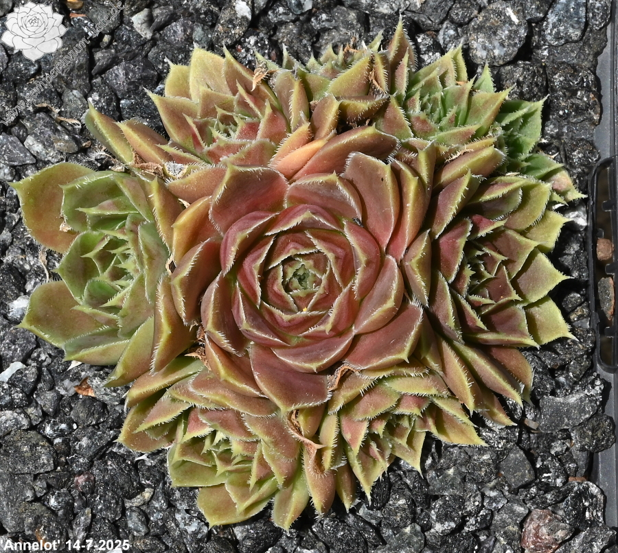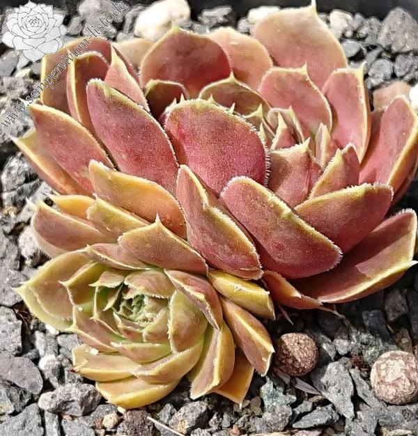 kleine Rosetten, Blätter oval, kurz bespitzt, Mischfarben oliv - rosa, Blattränder gelb