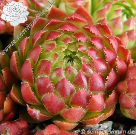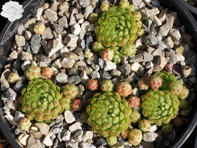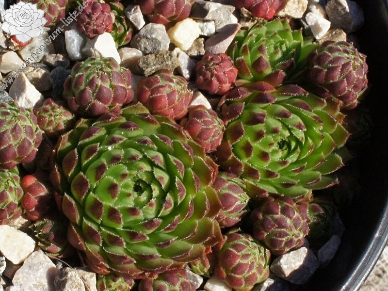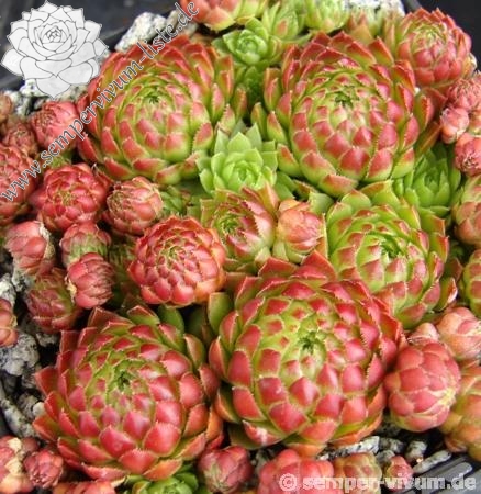 Eine neue Züchtung von Cornelis Versteeg mit dunklen grasgrünen Rosetten deren Spitzen in Bordeaux getaucht sind. Im Spätsommer und Herbst ein prächtiges Farbenfeuerwerk!