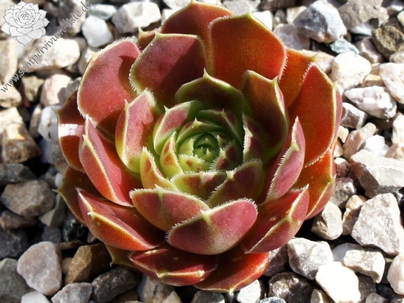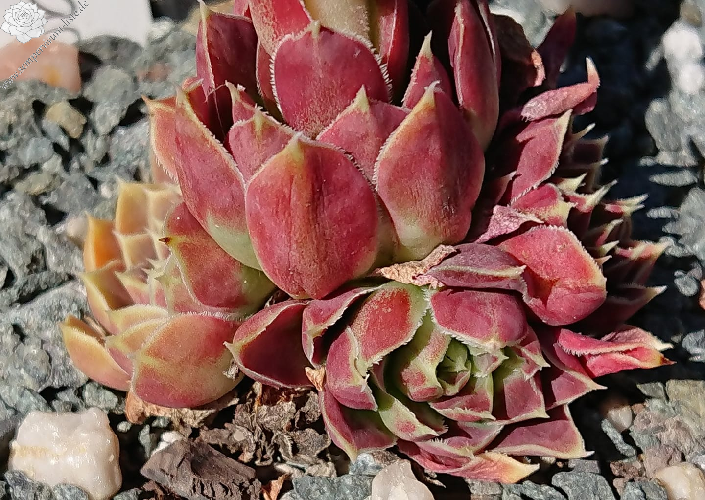 Rosetten bis 5 cm, Blätter kurz eiförmig, kurz bespitzt, lachsorange - lachsrot , Blattränder hell, leicht bewimpert