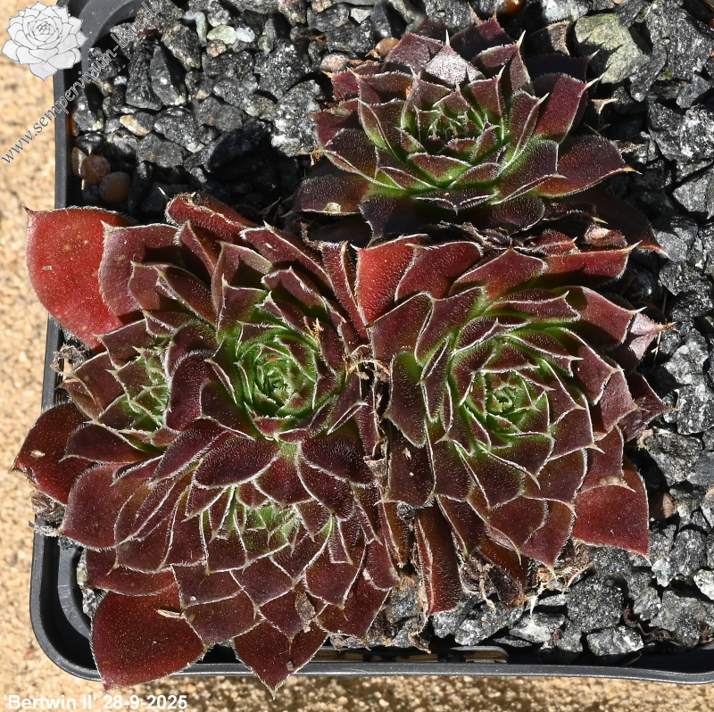 Dieser Sortenname ist eigentlich für einen S. x nixonii Kultivar bekannt. Bei der abgebildeten Pflanze handelt es sich jedoch um eine S. heuffelii Auslese. Die Blätter sind stark samtig, mit herrlichem Himbeerrot überzogen. Eine brillante Züchtung!