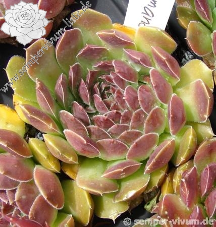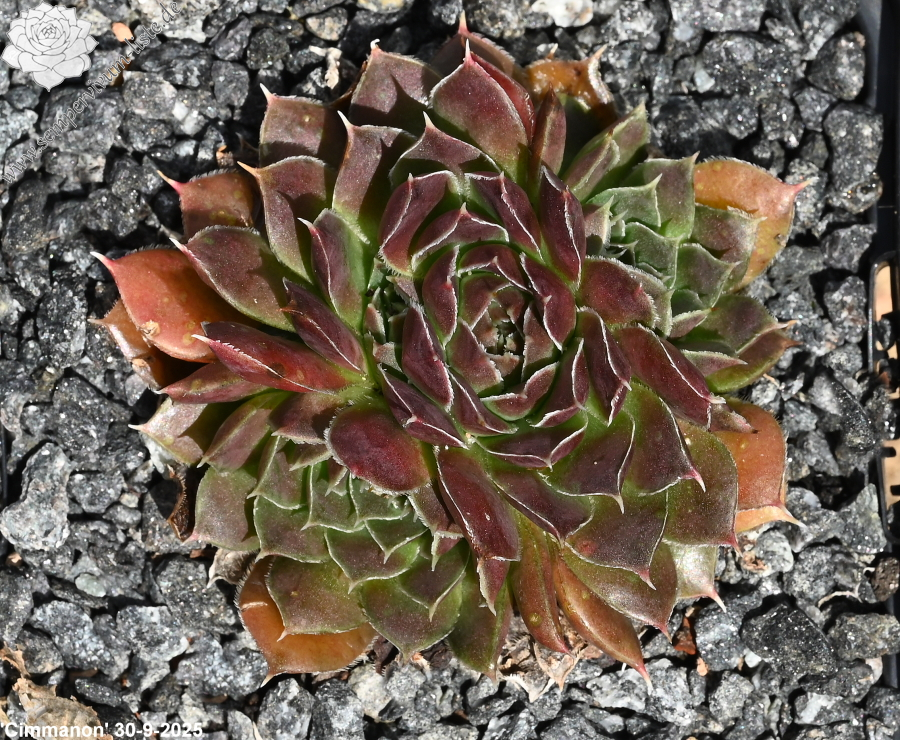 Die Sorte 'Cimmanon' aus den Niederlanden hat ihren eigenen Charme. Die triste Grundtönung der relativ großen Rosetten wird ab Sommer mit einem beeindruckendem Rosaviolet überzogen. Auch als 'Cinnamon' in Kultur.