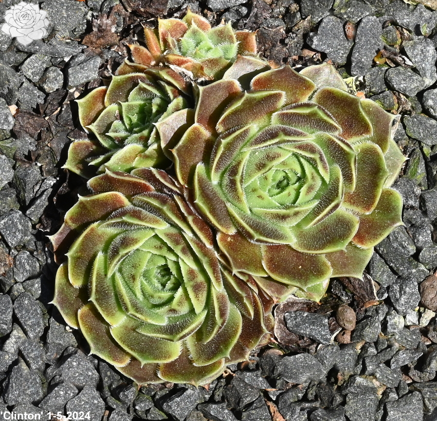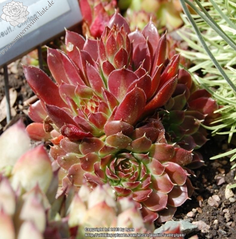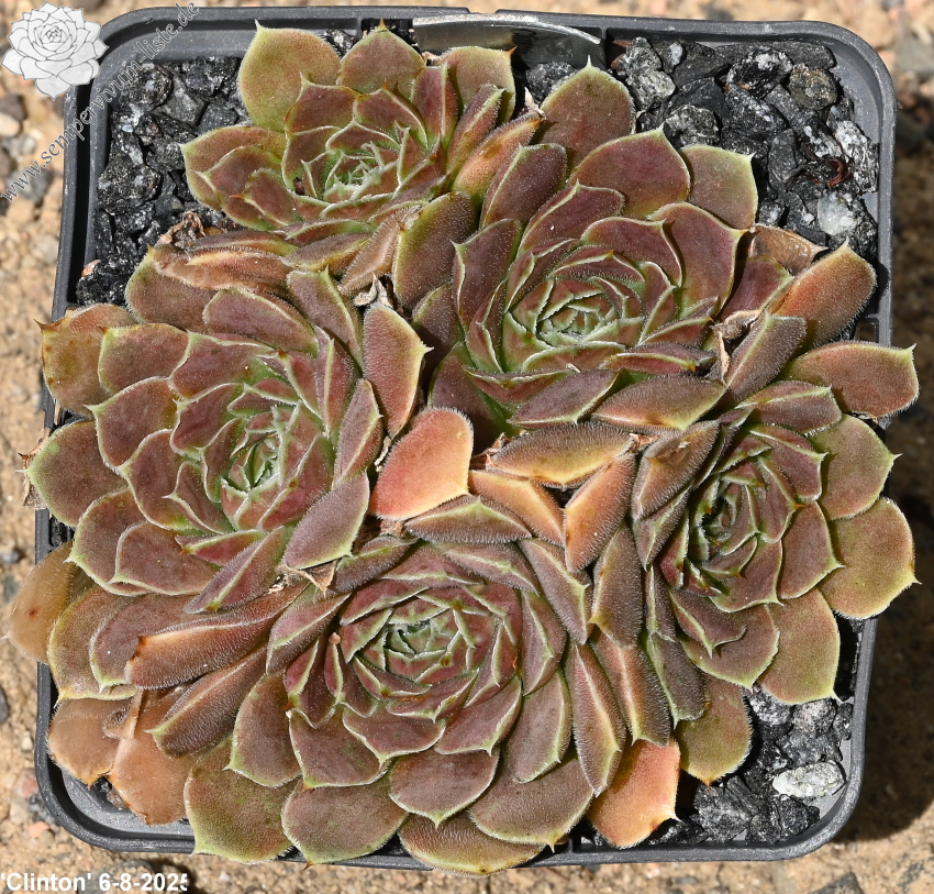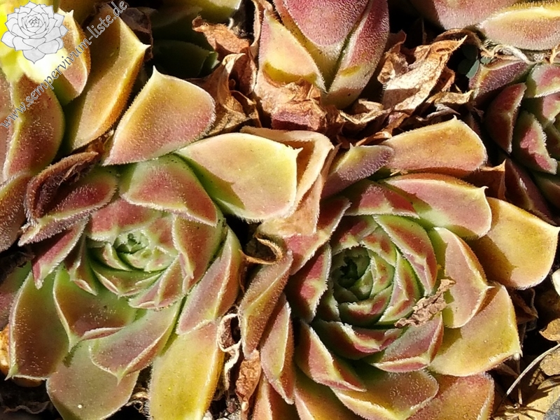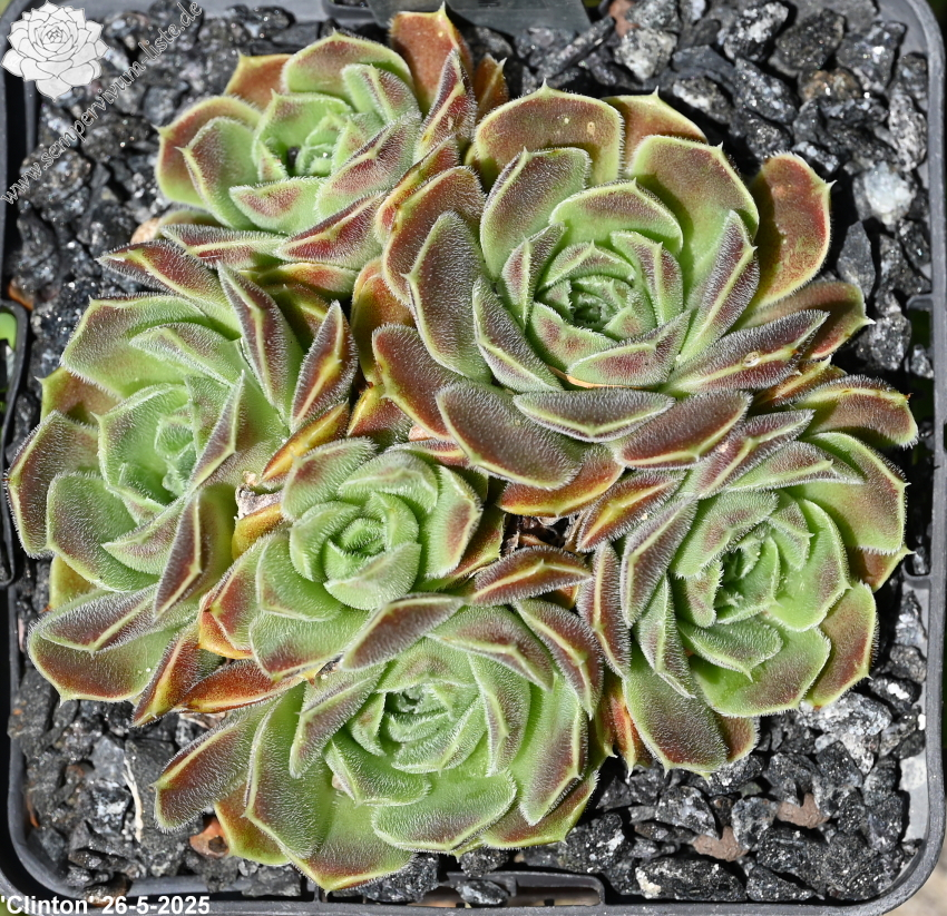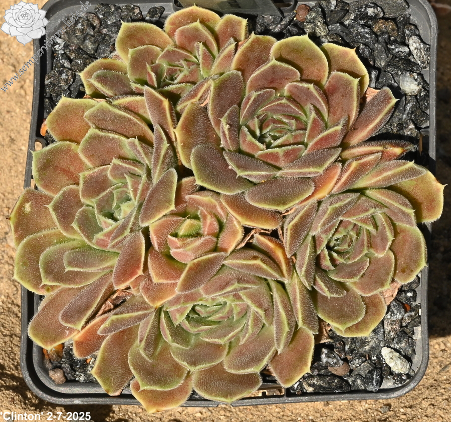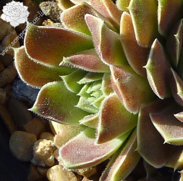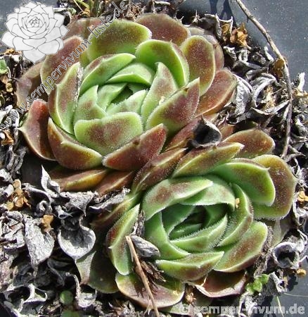 Eine recht unbekannte, auffallend attraktive Hybride aus Großbritannien. Sie formt kleinere, jadegrüne Rosetten mit hellbraunen bis bronzefarbenen Nuancen. Ungewöhnlich breit sind auch die Blätter.