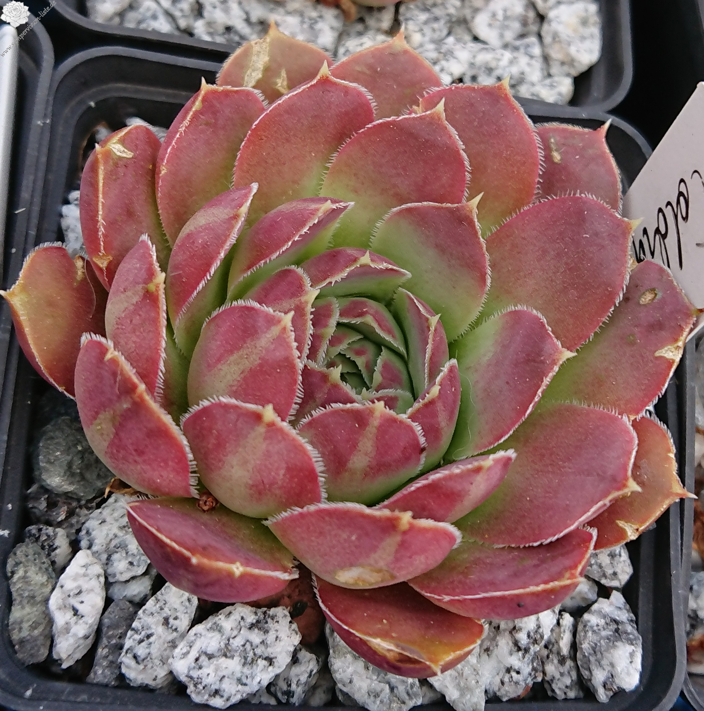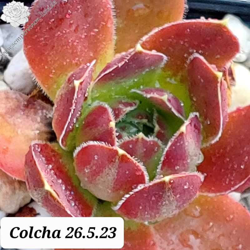 Rostten 7 cm, Basis grünlich-gelb, weinrot, Blattränder weiß bewimpert