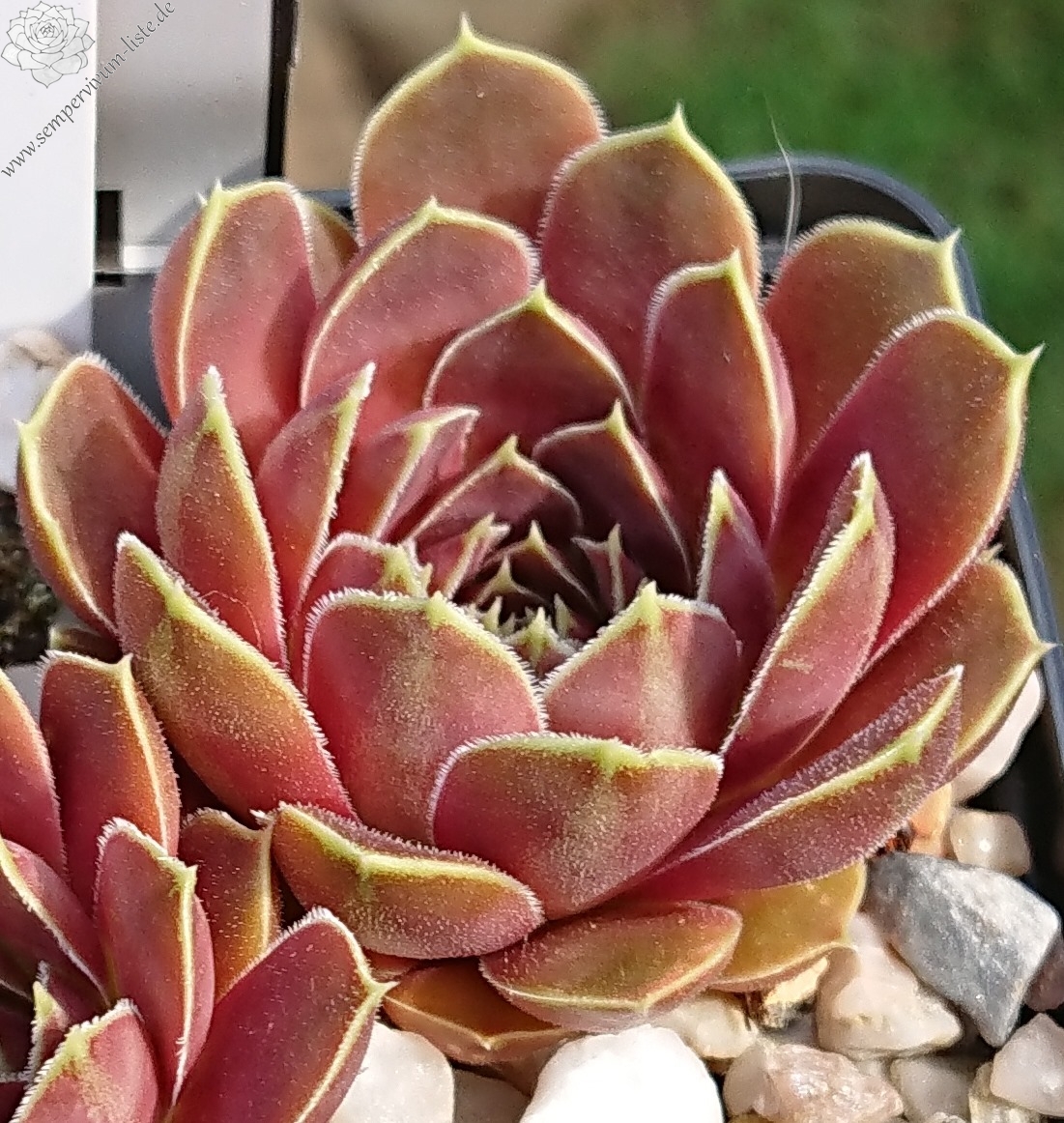 kleine Rosetten, samtiges Lila mit Gelb, Blattränder gelb mit ausgeprägter Spitze