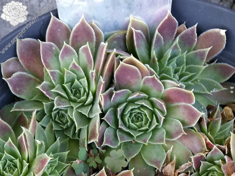 kleine Rosetten, Blätter eiförmig, lindgrün mit rosa Spitzen, Blattränder hell, leicht bewimpert