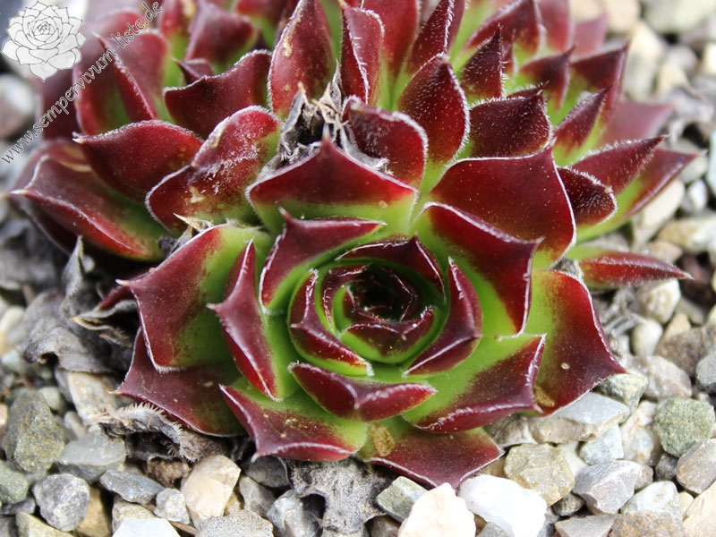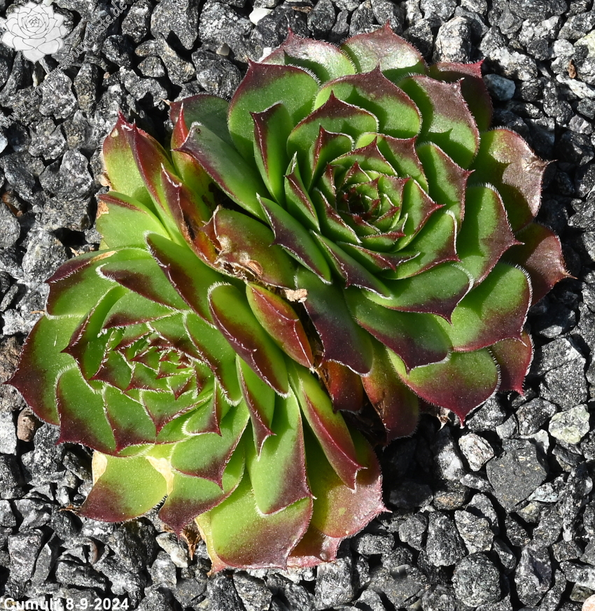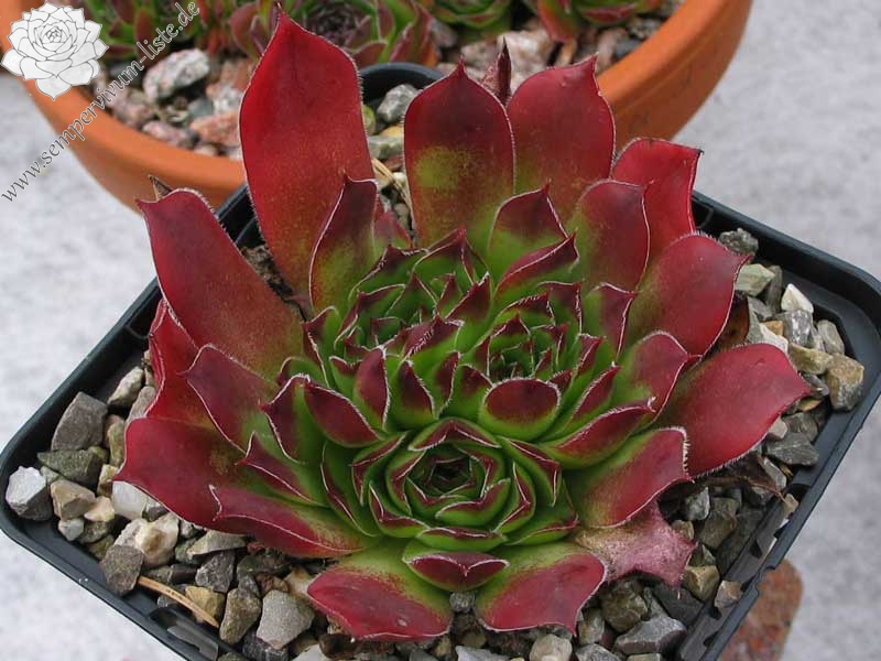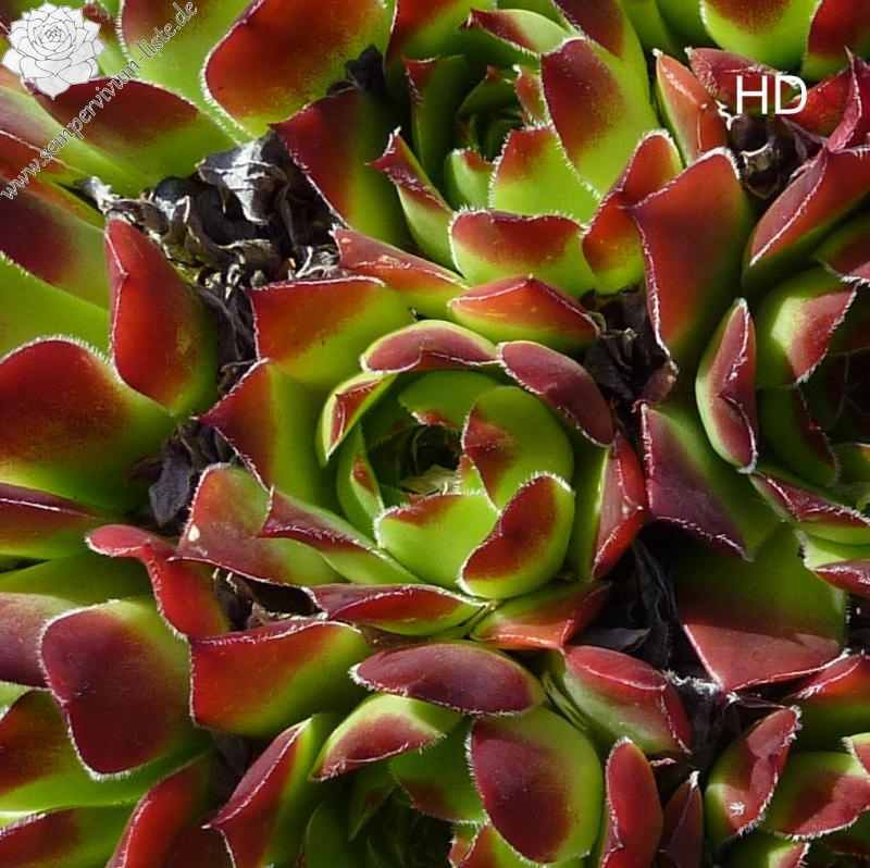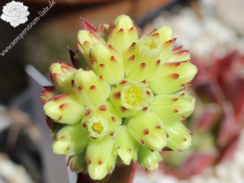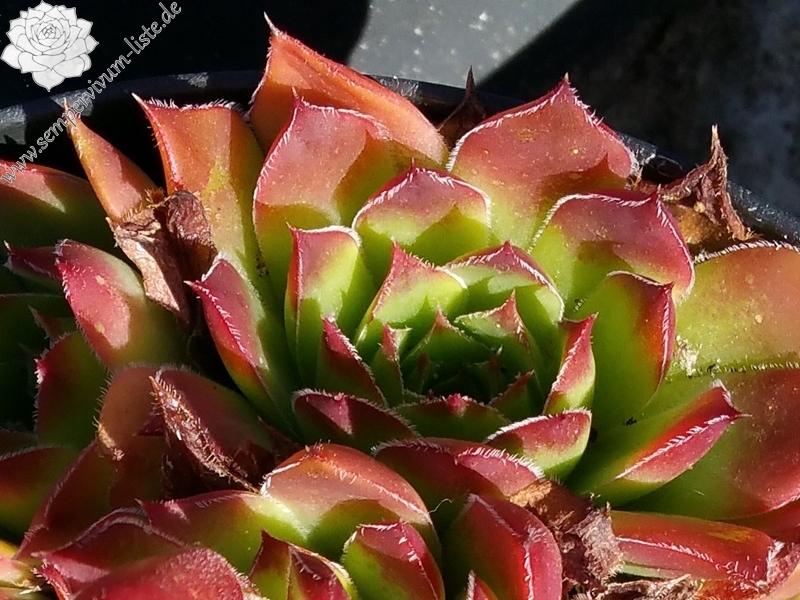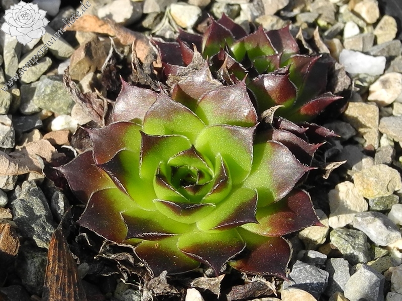 Ros. 5 cm, breit, grün, rote Spitzchen