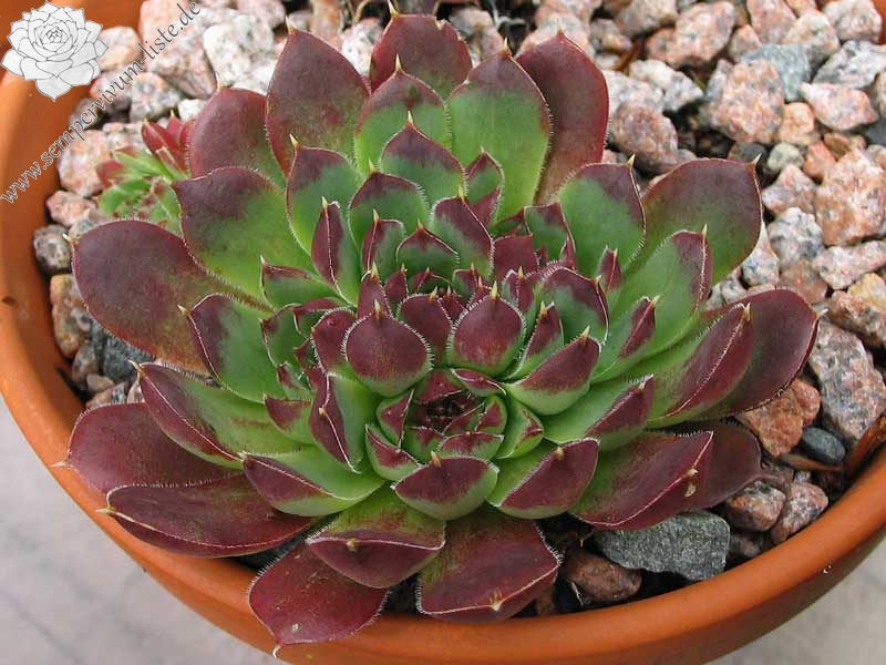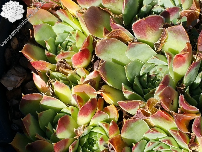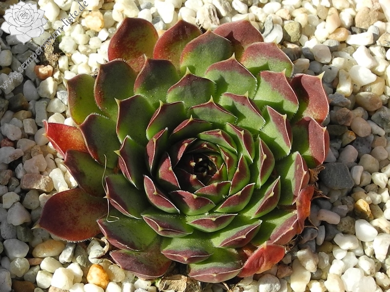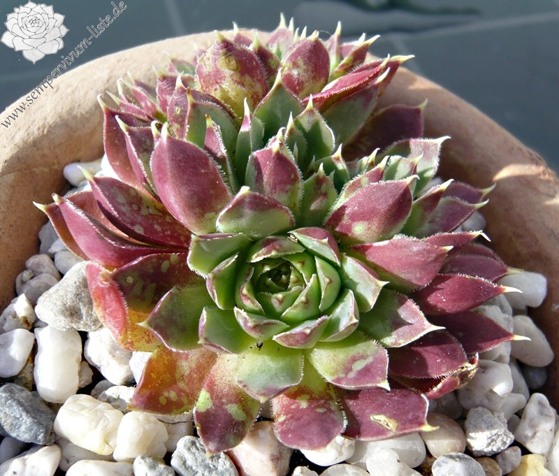 Rosetten bis 4 cm, Blätter länglich, Basis grün, dunkle braun - rote Spitzen