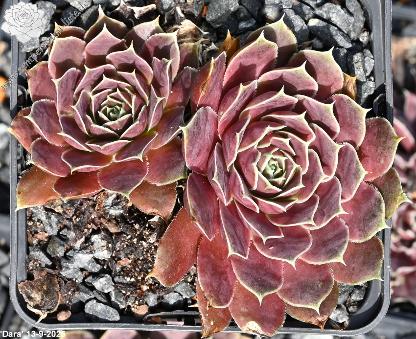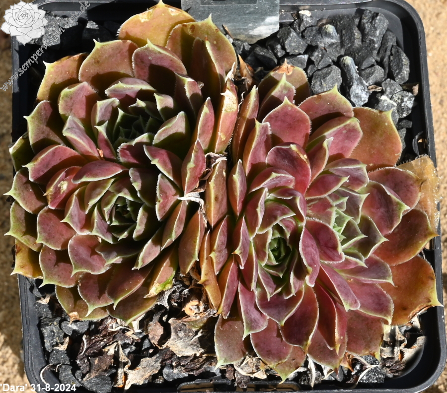 kleine Rosetten, Blätter oval, lang bespitzt, Mischfarben helles Rot - Grün