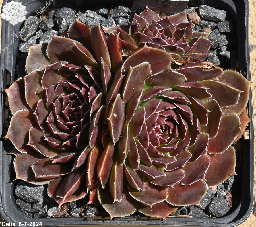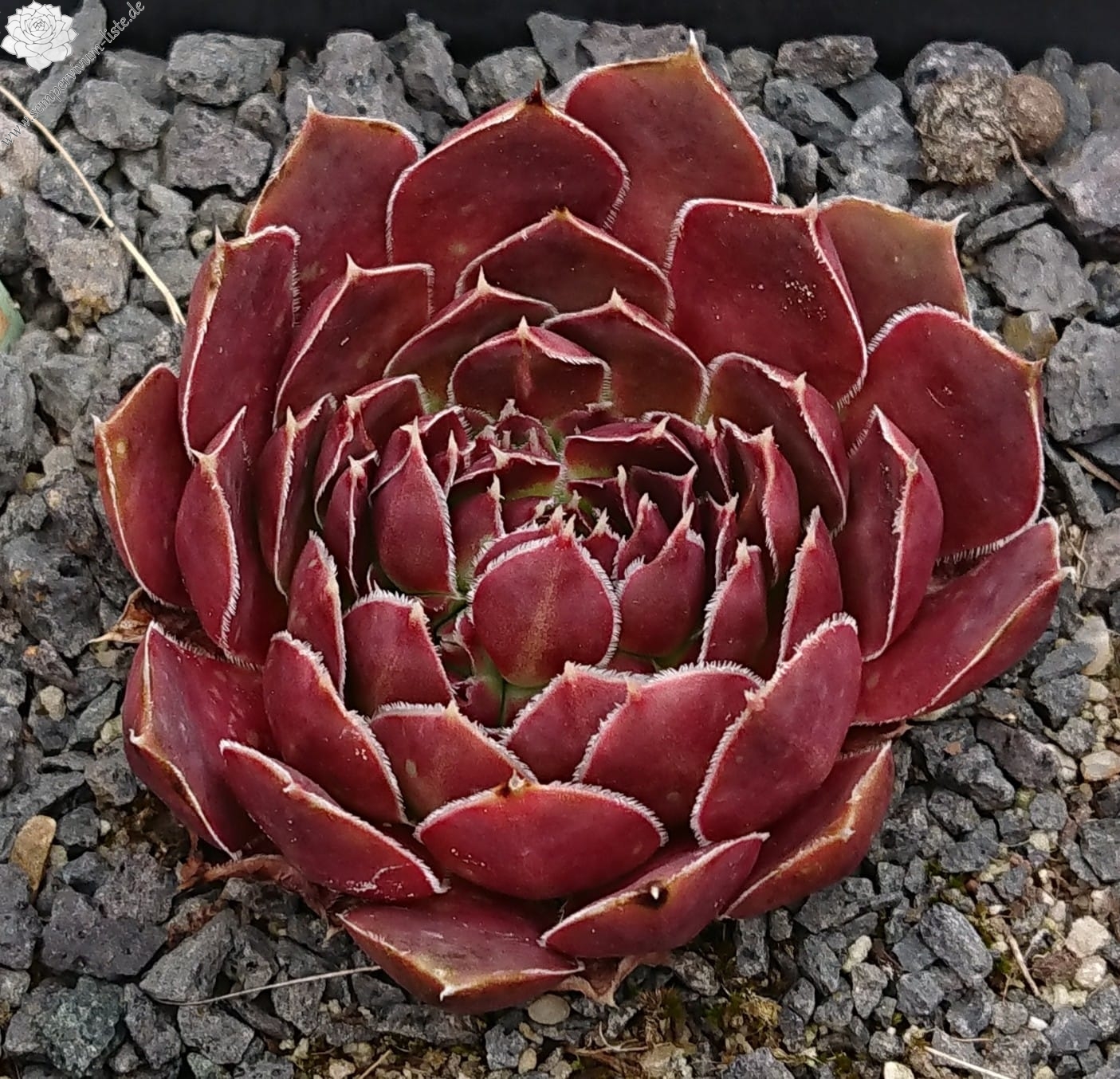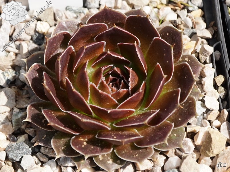 kleine Rosetten, Blätter rundlich, kurz bespitzt, weinrot, Ränder hell