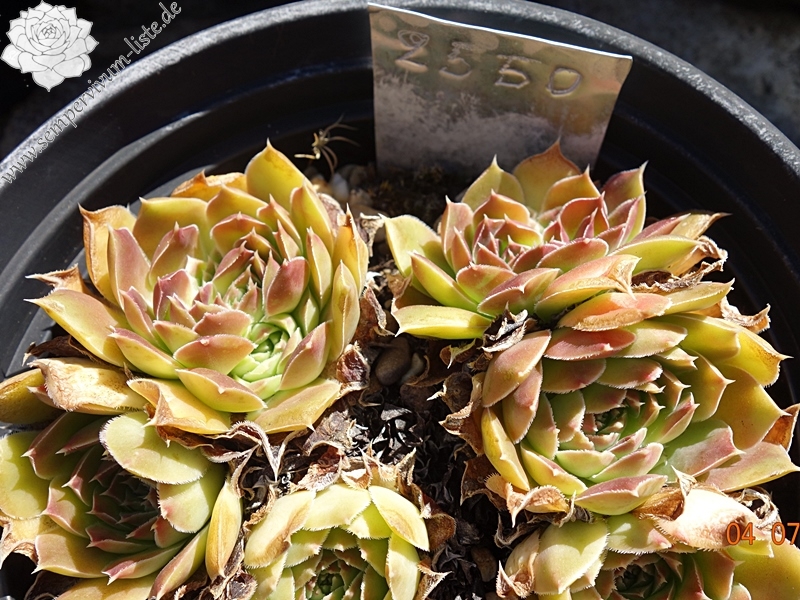 Rosetten bis 6 cm, Blätter rundlich, kurz bespitzt, Mischfarben grün - gelblich - rosa - braun