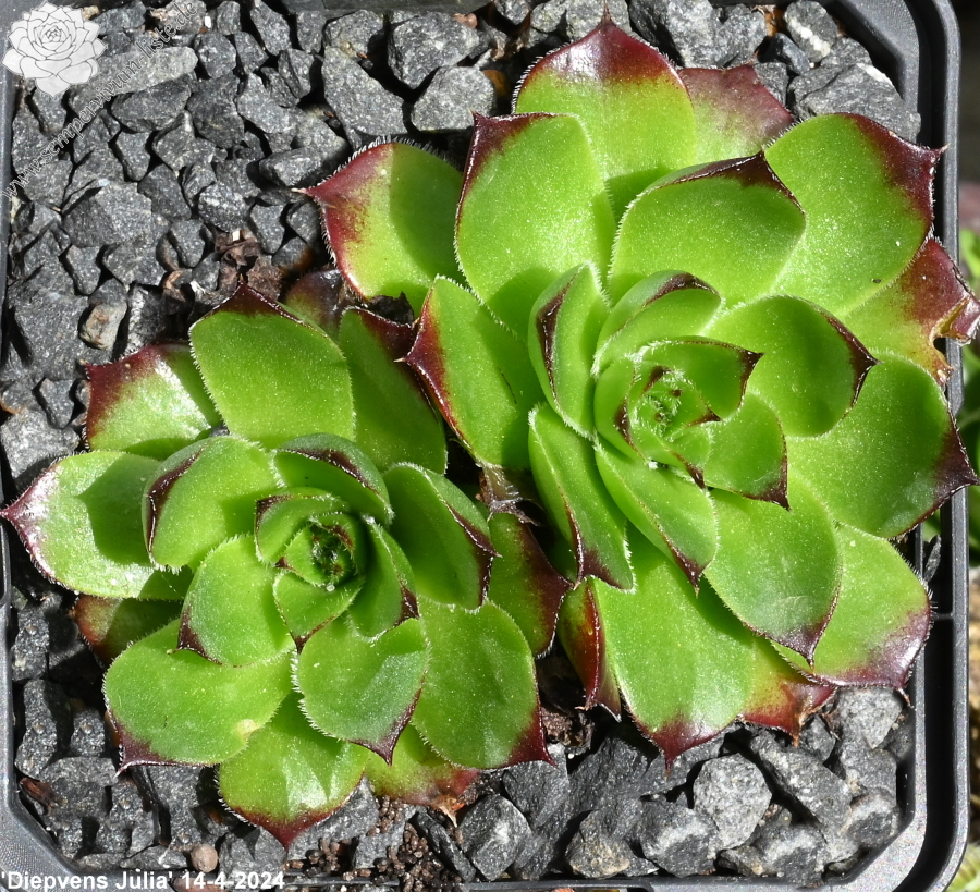 kleine Rosetten helles Grün, Blattspitzen helles Rot, Blattränder bewimpert.