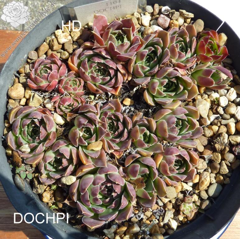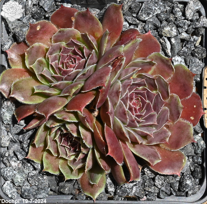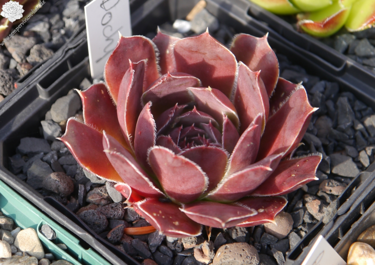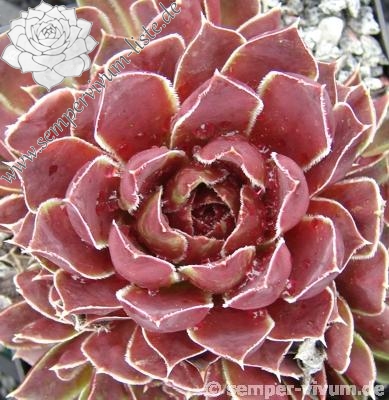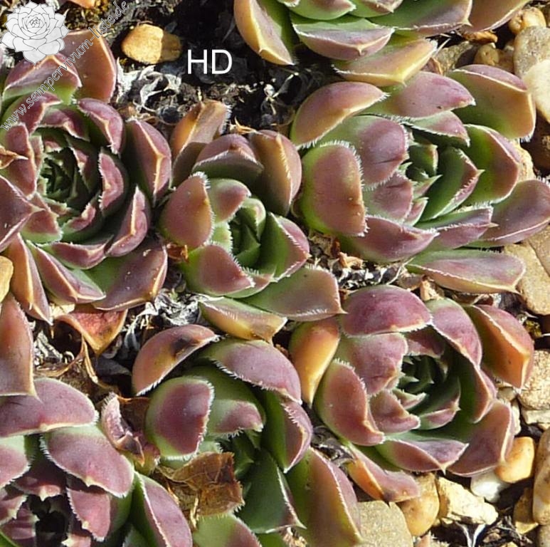 Eine belgische Züchtung mit mittelgroßen Rosetten in violettpurpurnen und olivgrünen Farben.