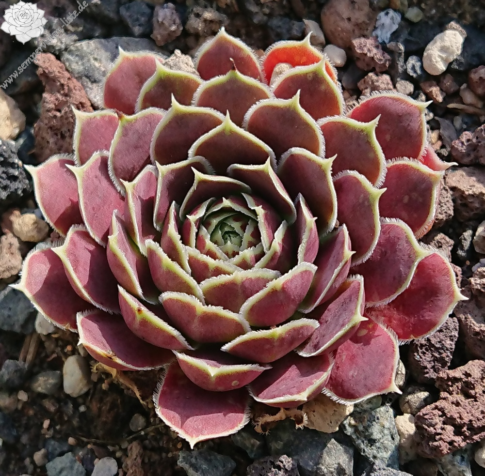 Rosetten bis 6 cm, Blätter lanzettlich, lang bspitzt, Mischfarben rot - braun, Rand grüngelb, leicht bewimpert