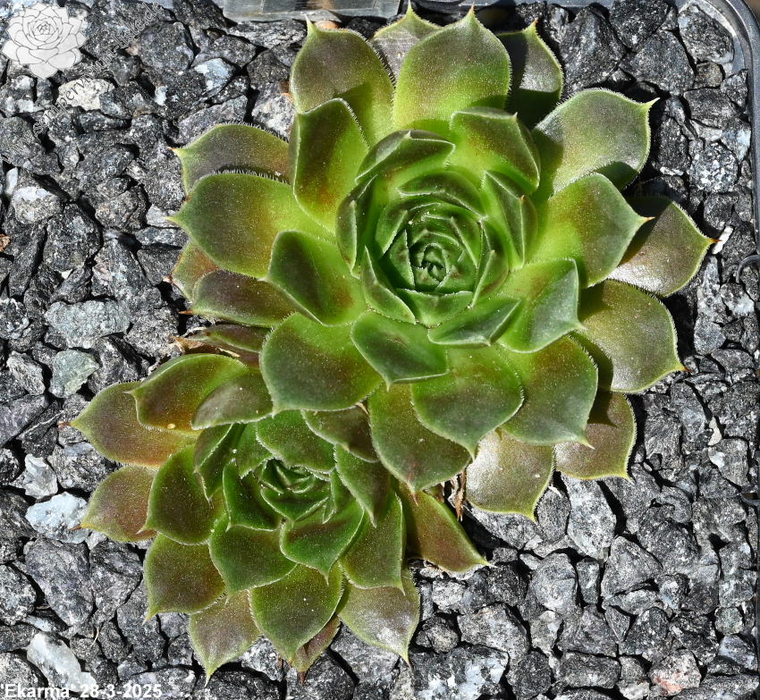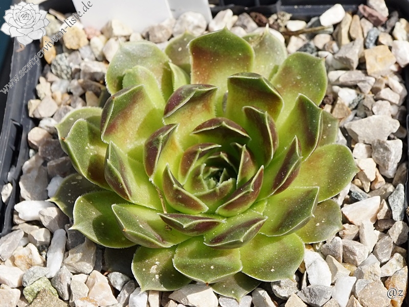 Rosetten bis 7 cm, Blätter spatelig, kurz bespitzt, Pastellfarben grün - gelb - rosa -rot, Ränder bewimpert