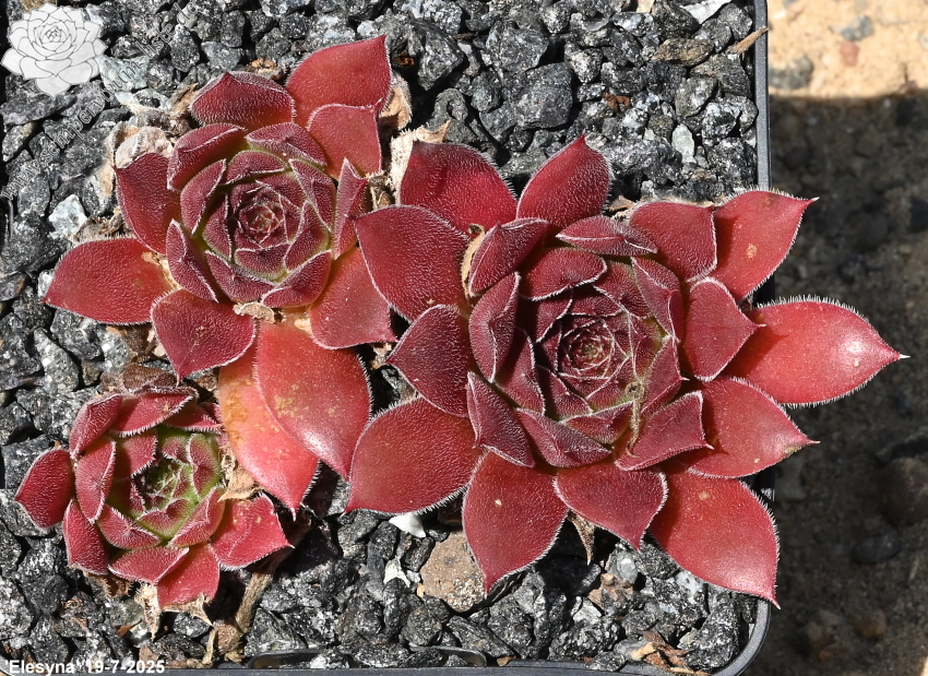 Rosetten bis 5 cm, Blätter linealisch, lang bespitzt, samtige Substanz, helles Rosa