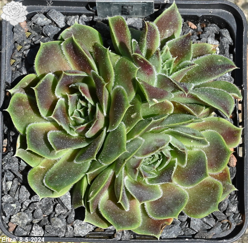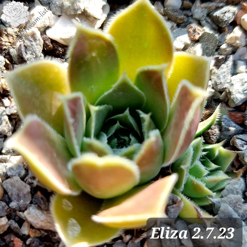 Rosetten bis 5 cm, Blätter oval, lang bespitzt, Mischfarben hellgrün - pastellviolett