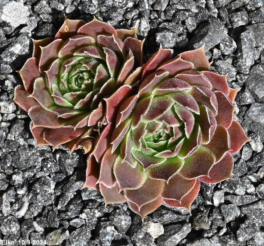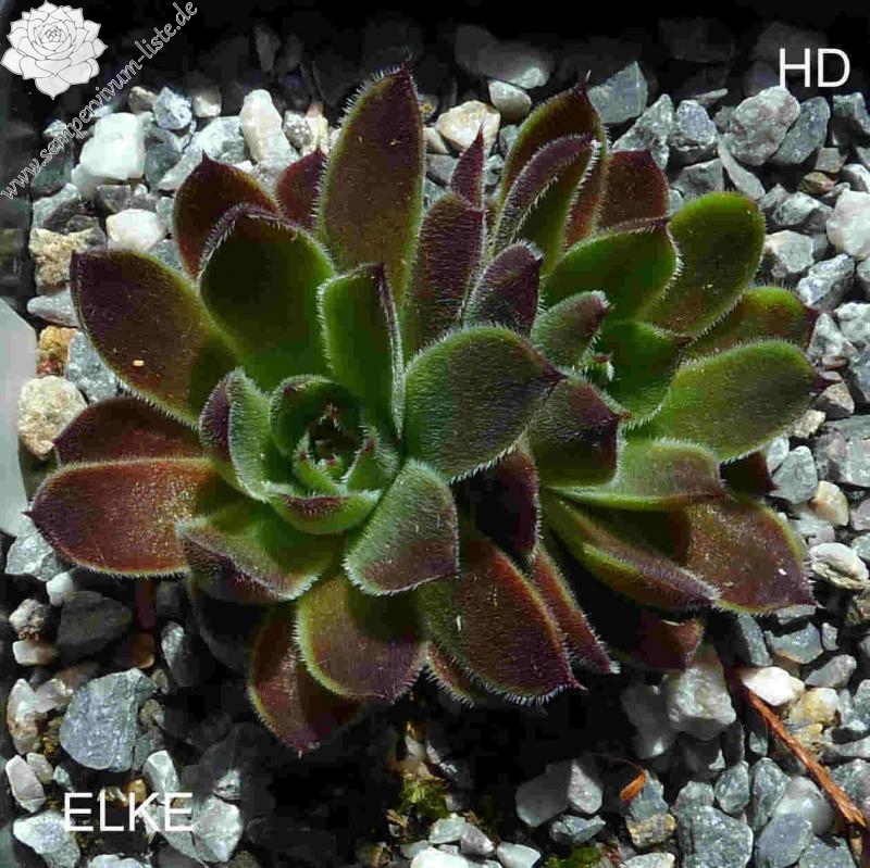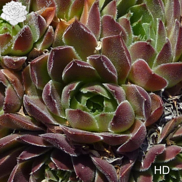 Rosetten bis 6 cm, Blätter linealisch, lang bespitzt, samtige Substanz, Herz dunkles Grün, Rest dunkles Braun - Lila, Blattränder silbrig bewimpert
