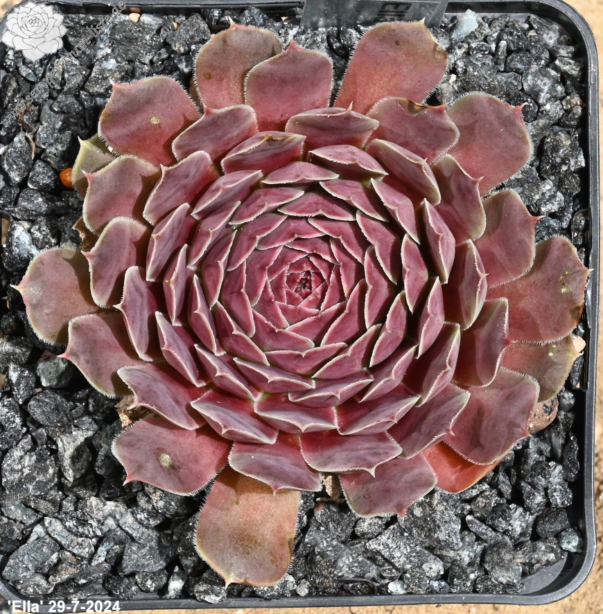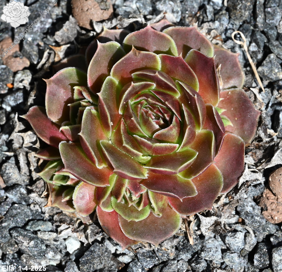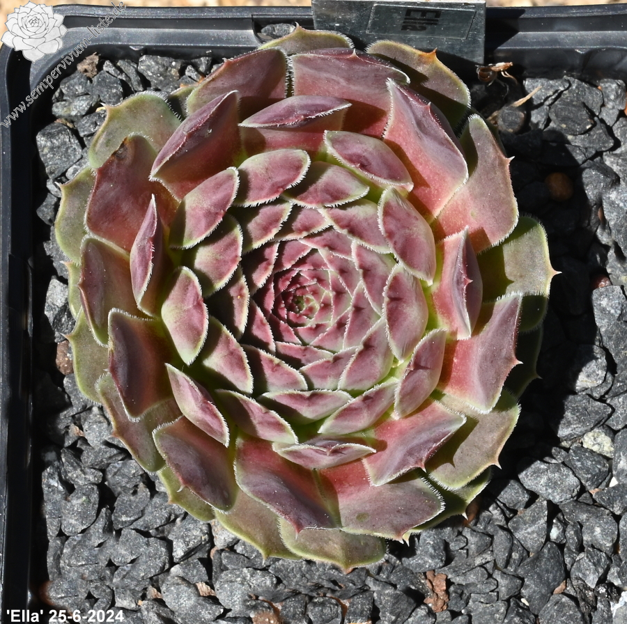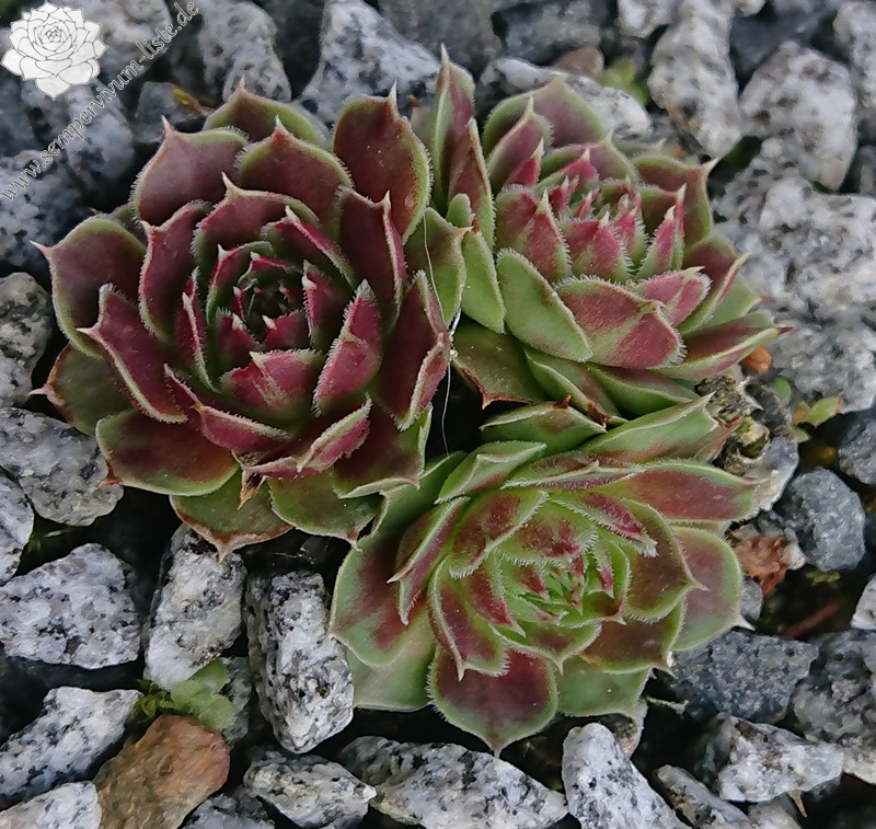 Rosetten bis 6 cm, Blätter keilförmig, kurz bespitzt, Mischfarben moosgrau - pastellviolett
