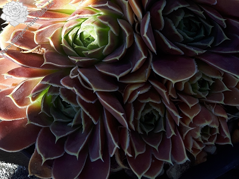 kleine Rosetten, Blätter spatelig, lang bespitzt, hellgrün mit rosa, Blattränder hell, bewimpert