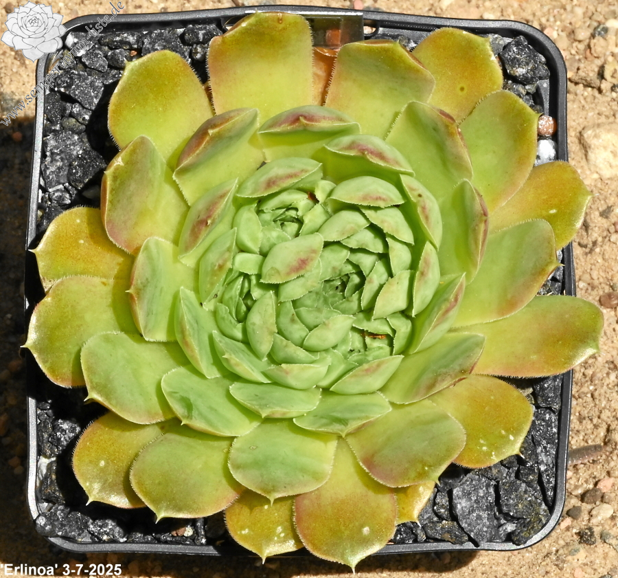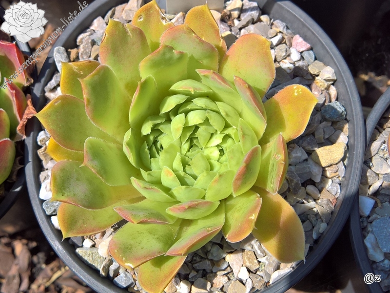 Rosetten bis 4 cm, Blätter oval, kurz bespitzt, Mischfarben hellgrün - gelblich