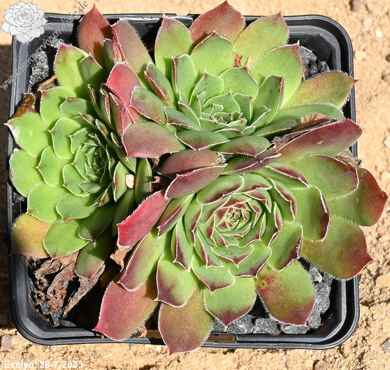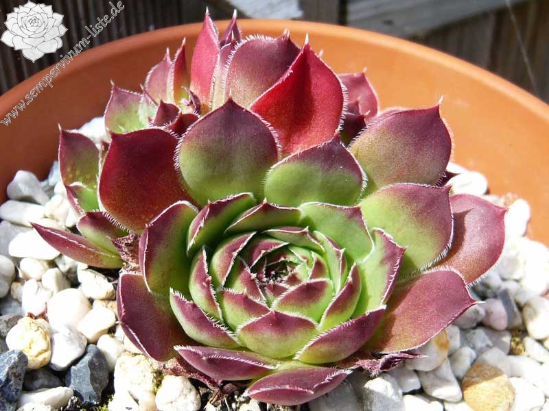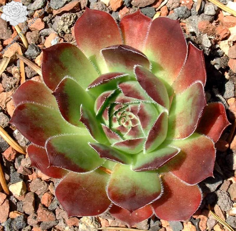 große Rosetten, lindgrün in rötlichbraun übergehend, Blattränder bewimpert