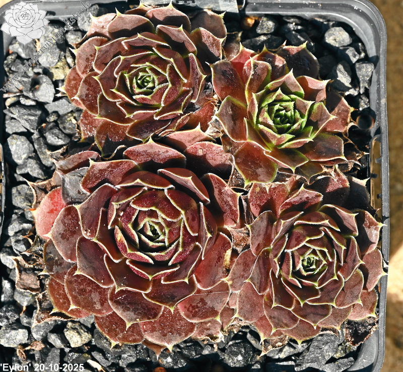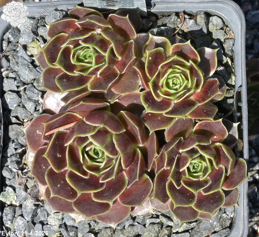 Rosetten bis 6 cm, Basis blassgrün, Rest beigerot - lachsrot, Blattränder bewimpert