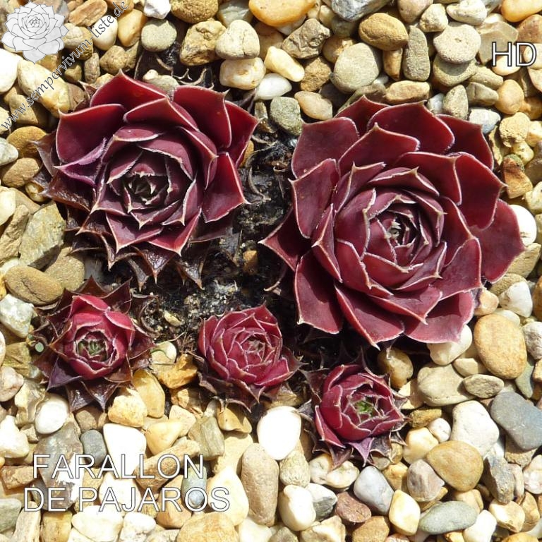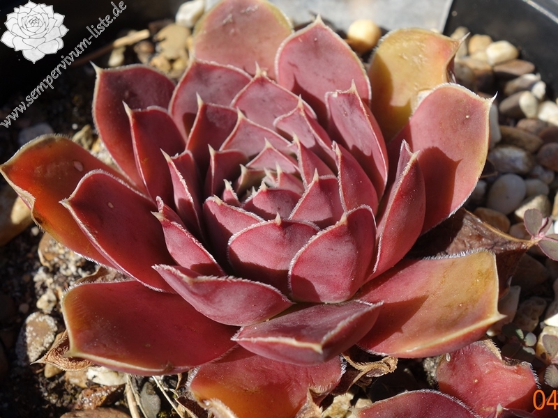 Rosetten bis 5 cm, Blätter breit keilförmig, kurz bespitzt, rotviolett - bordeauxviolett