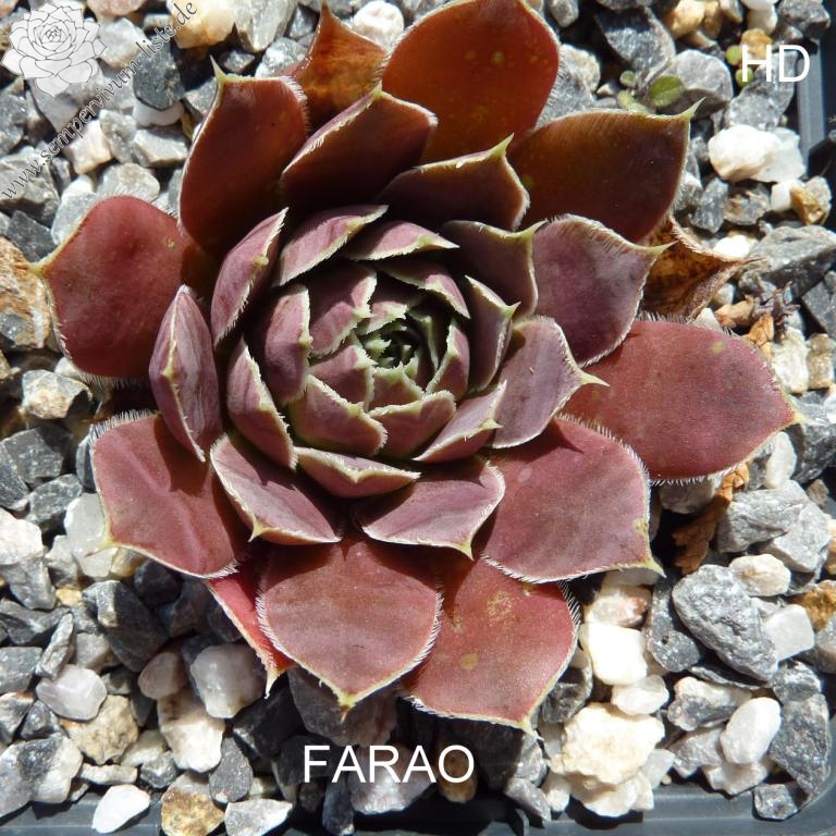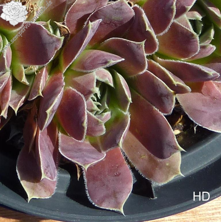 mittelgroße Rosetten, dunkle Rottöne, Ränder hell bewimpert