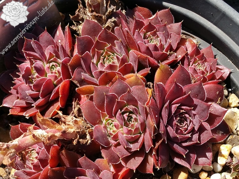 Rosetten bis 5 cm, dunkles Rot, Blattränder bewimpert