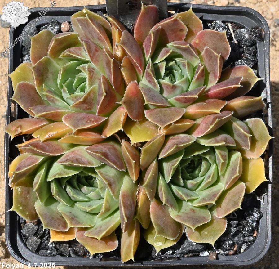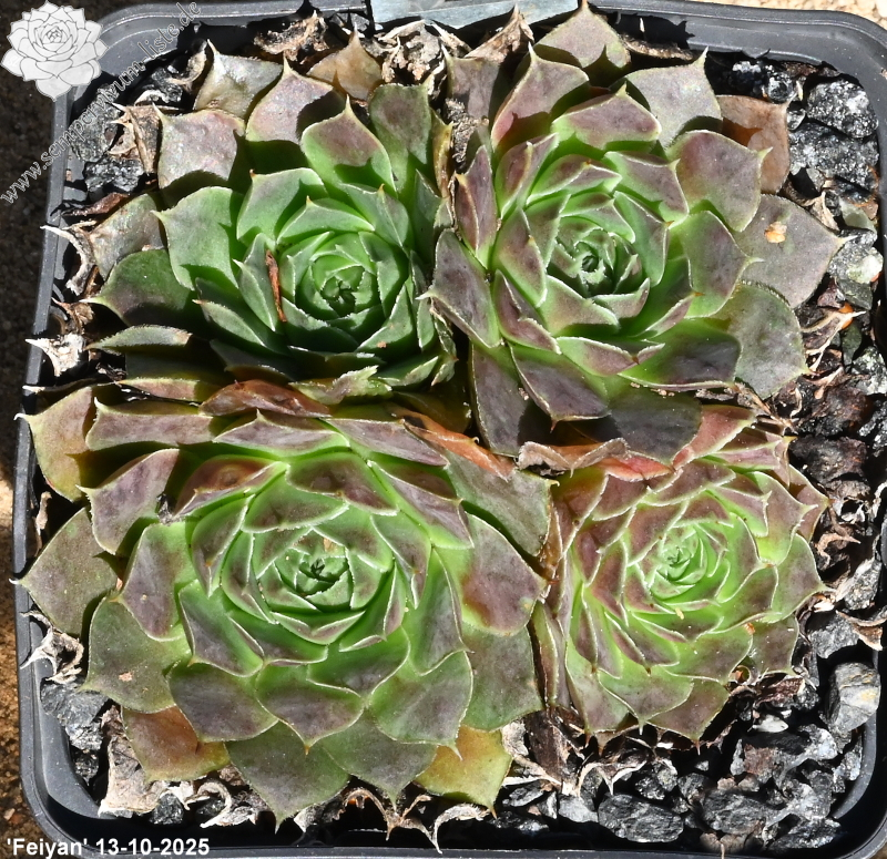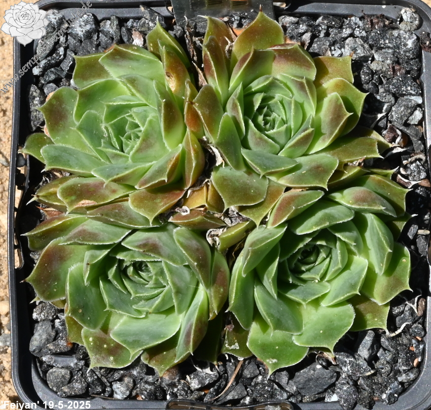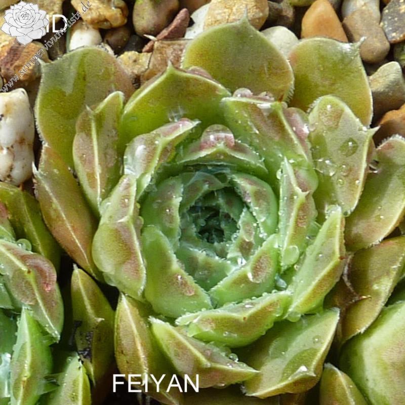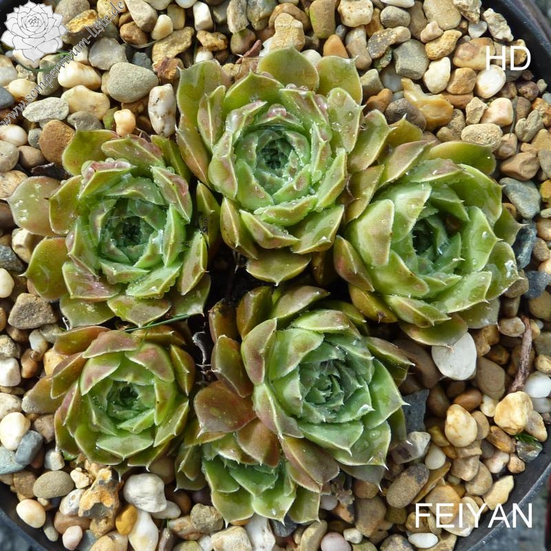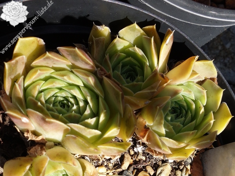 Rosetten bis 6 cm, Blätter rundlich, kurz bespitzt, Mischfarben blassgrün - grünbeige