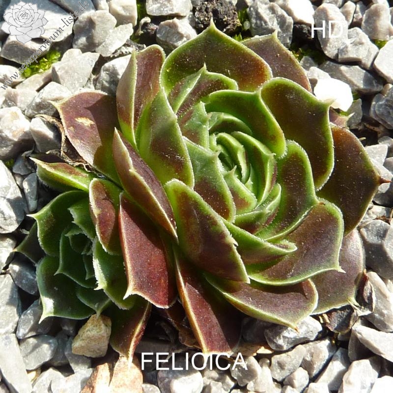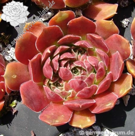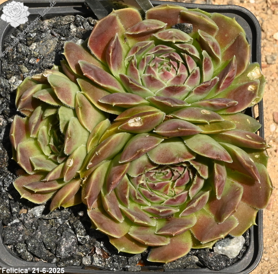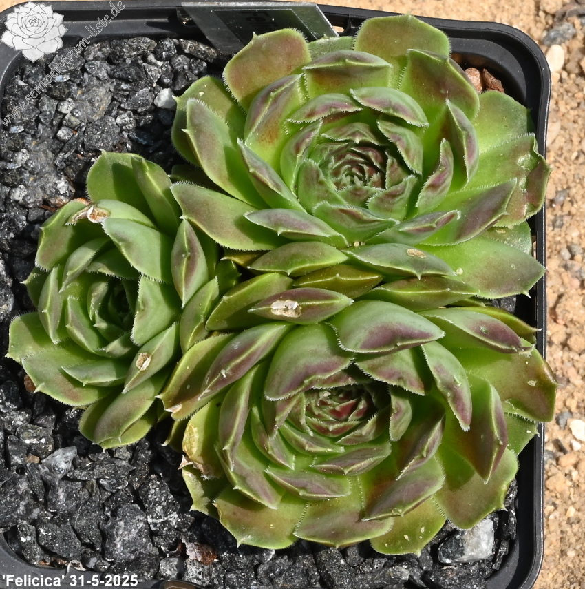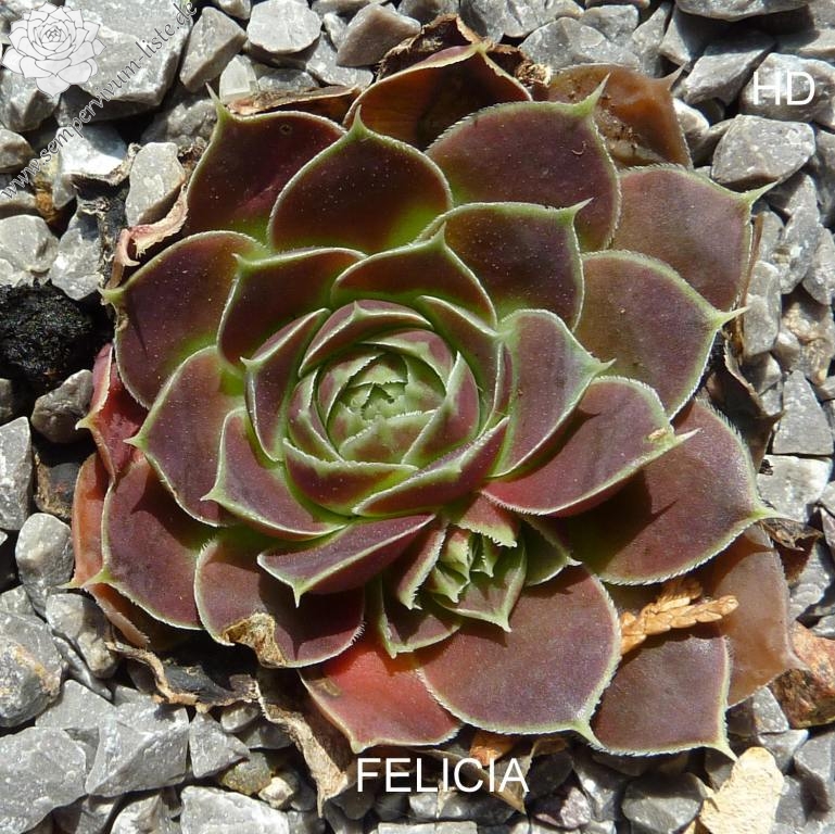 Rosetten bis 6 cm, Blätter oval, kurz bespitzt, dunkelbraun - rot, helle Blattränder