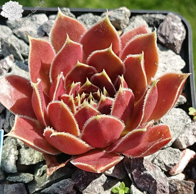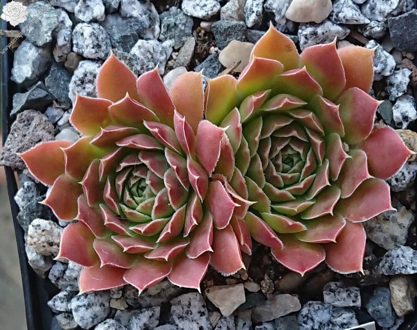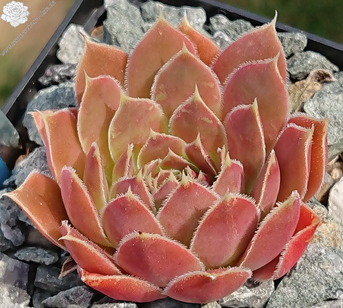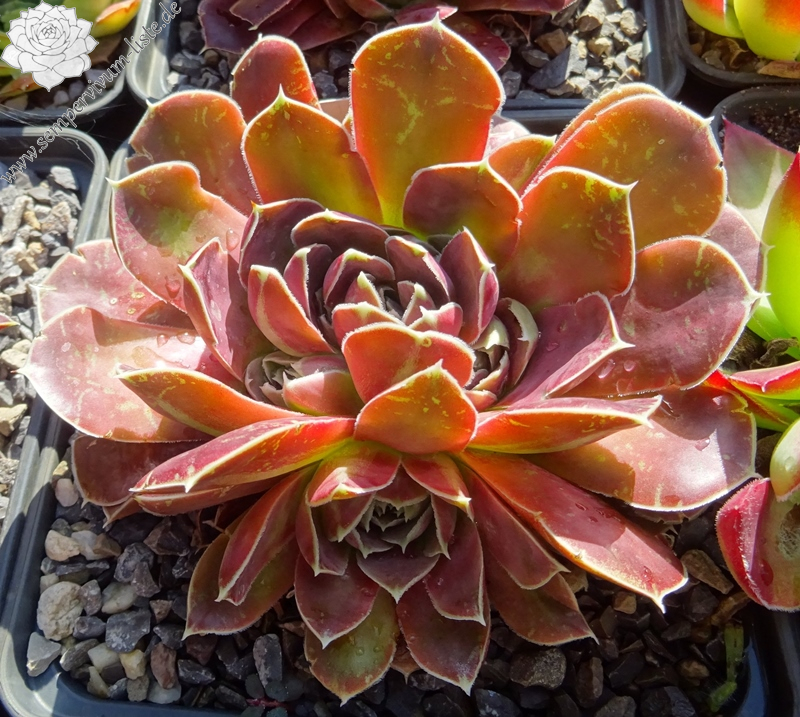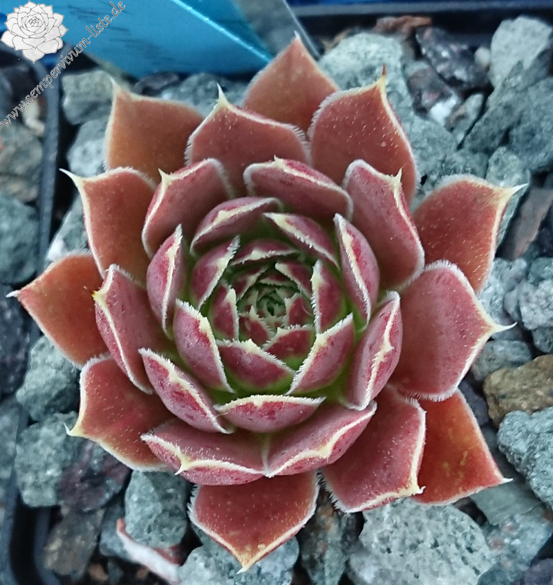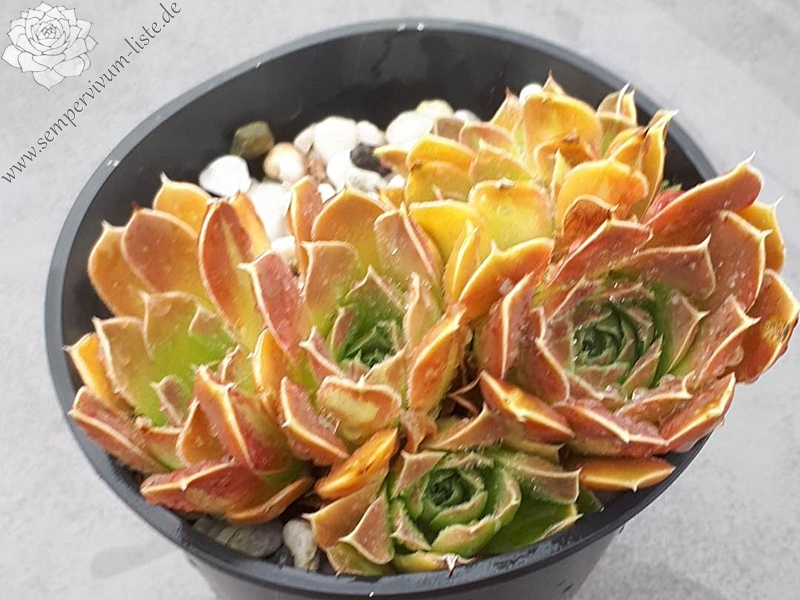 Rosetten bis 6 cm, Blätter oval, kurz bespitzt, Basis hellgrün, Rest braunrot - oxidrot