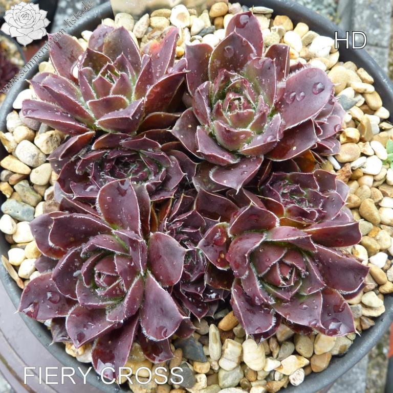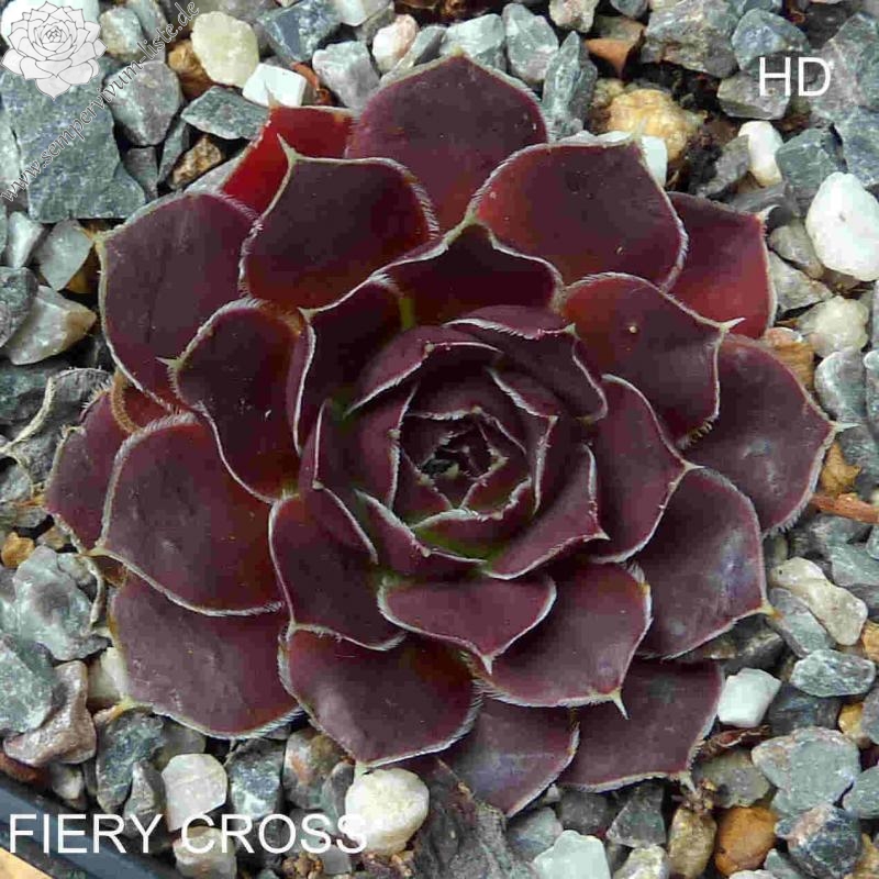 Rosetten bis 7 cm, Blätter oval, kurz bespitzt, Basis hellgrün, Rest rotlila - signalviolett, bewimpert