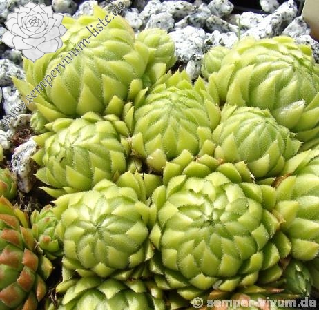 Erwin Geiger: Die kugeligen Rosetten sind gelblich smaragdgrün gefärbt. Bildet wie alle Hen and Chick´s in kurzer Zeit dichte Polster.