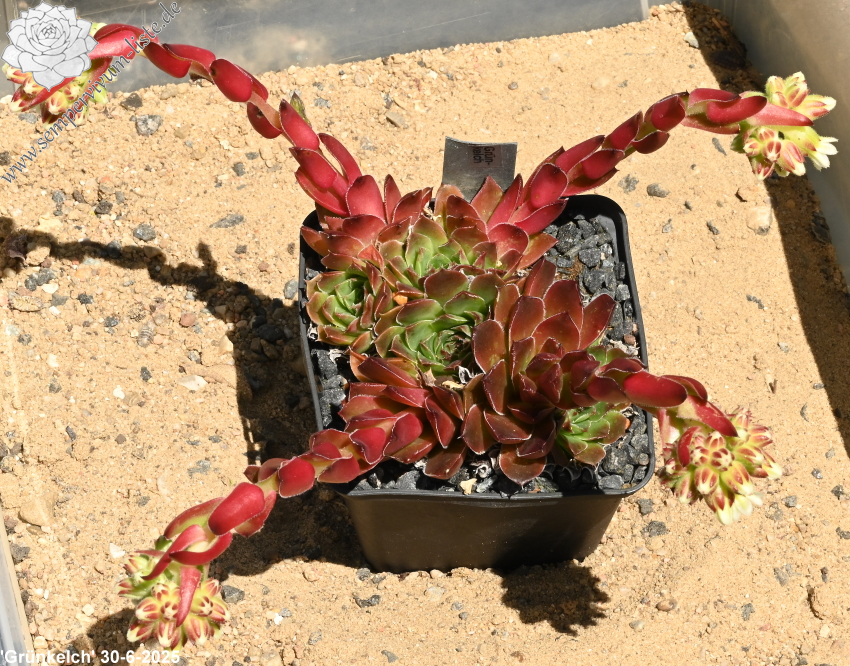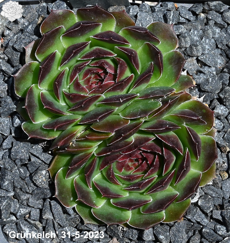 Ein grüner S. heuffelii Typ aus Deutschland. Eigentlich nichts Spektakuläres, aber dennoch hat cv. Grünkelch seine eigene Form und Färbung. Die Blätter sind zumeist zur Hälfte braun gefärbt.