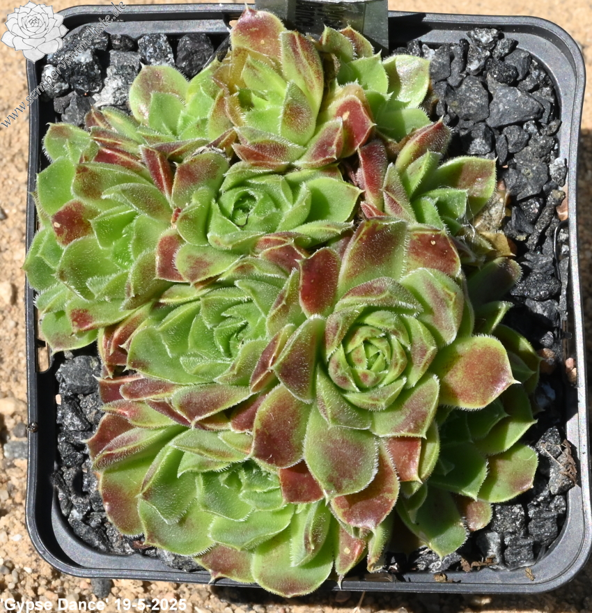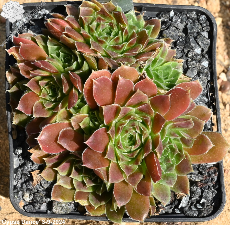 kleine Rosetten, Blätter breit keilförmig, kurz bespitzt, samtige Substanz, Herz hellgrün, Rest rose - altrosa, Ränder bewimpert