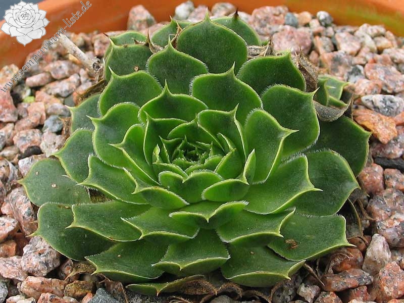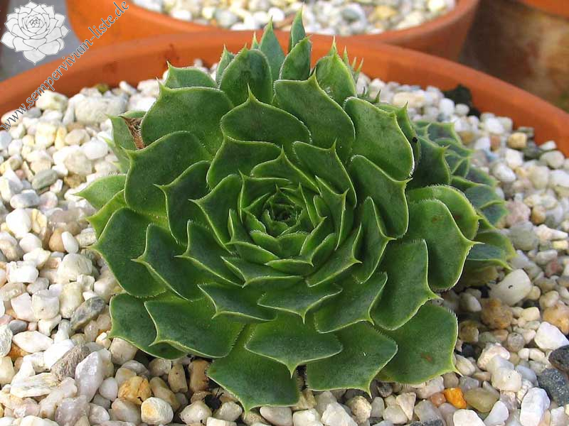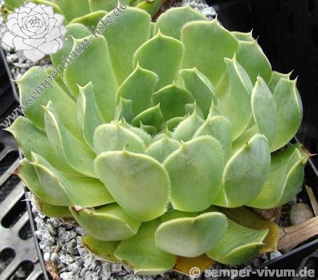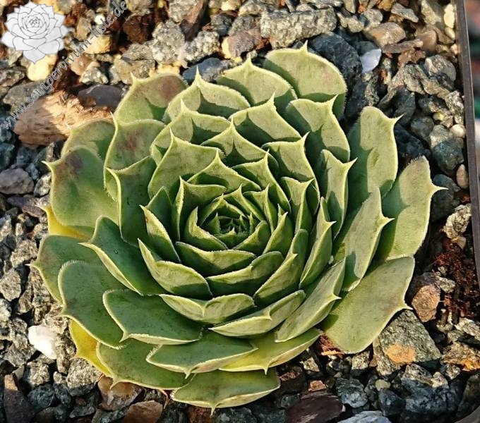 Erwin Geiger: Große, jadegrüne Rosetten, gefunden in Griechenland. Bei vollsonnigem Standort nehmen die Blätter einen leicht gelblichen Ton an.