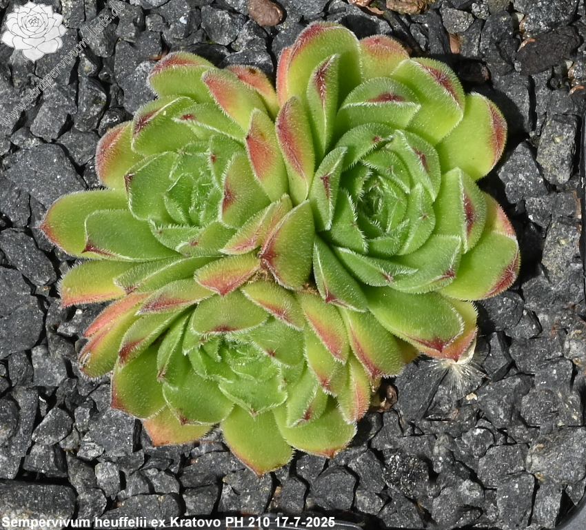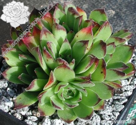 Erwin Geiger: Ein Klon aus Mazedonien mit leicht samtigen Rosetten von frisch grüner Färbung und mahagonifarbenen Spitzen.