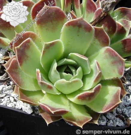 Erwin Geiger: Der attraktive Klon wurde in Albanien aufgesammelt. Er formt eher große Rosetten mit jadegrüner bis silbriger Grundtönung. Ab Juni färben sich zwei Drittel der Blätter in auffallendes Terracotta-Rosa. Anzumerken ist, dass diese Farben für eine Standortform recht ungewöhnlich sind. PH806