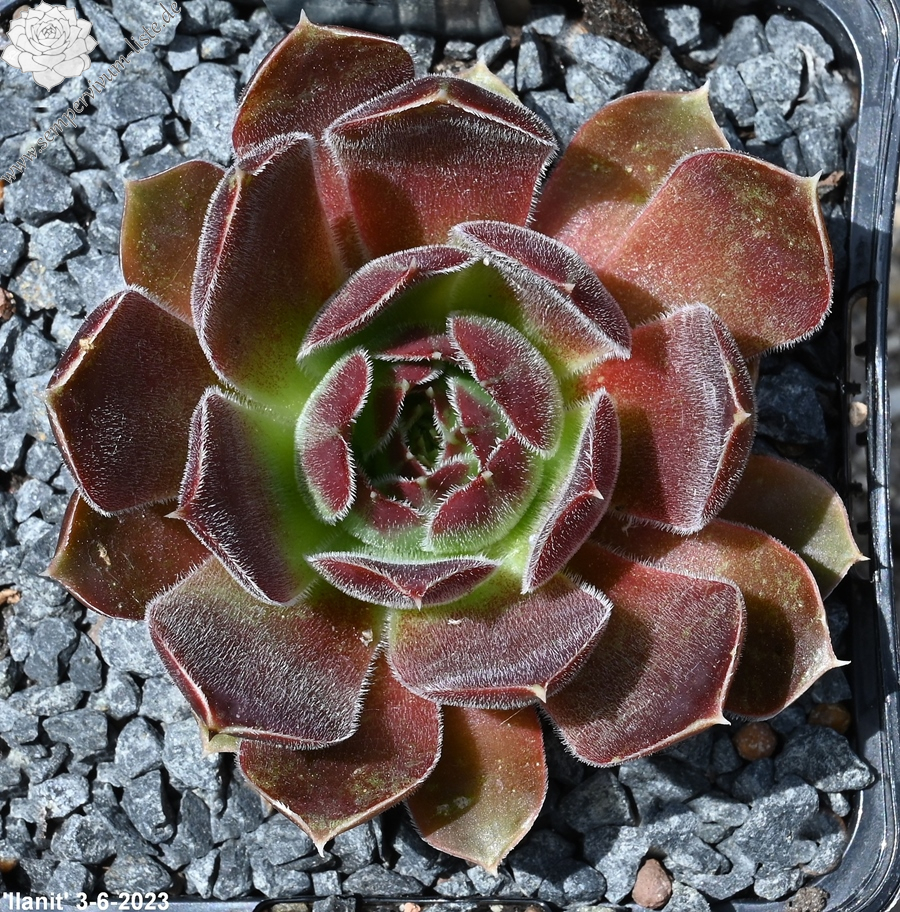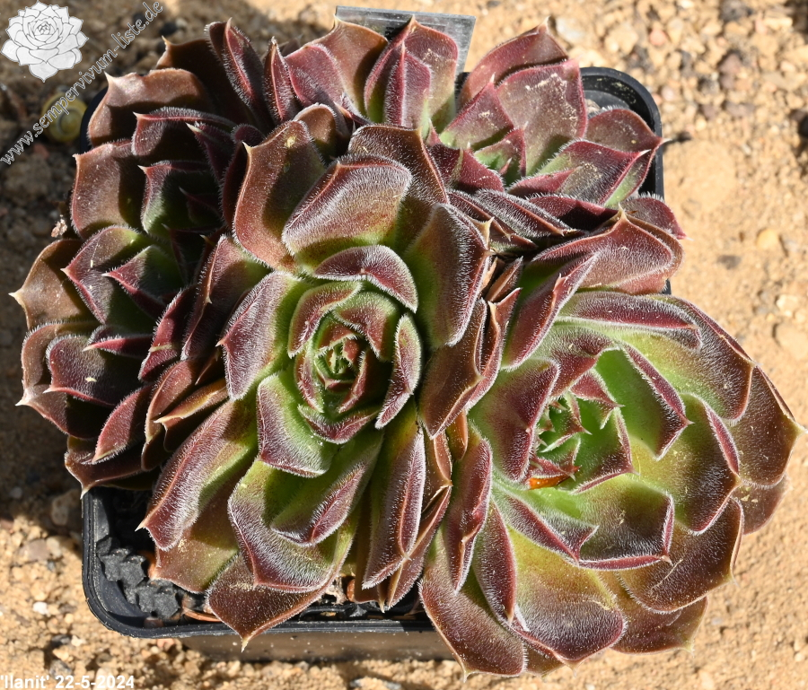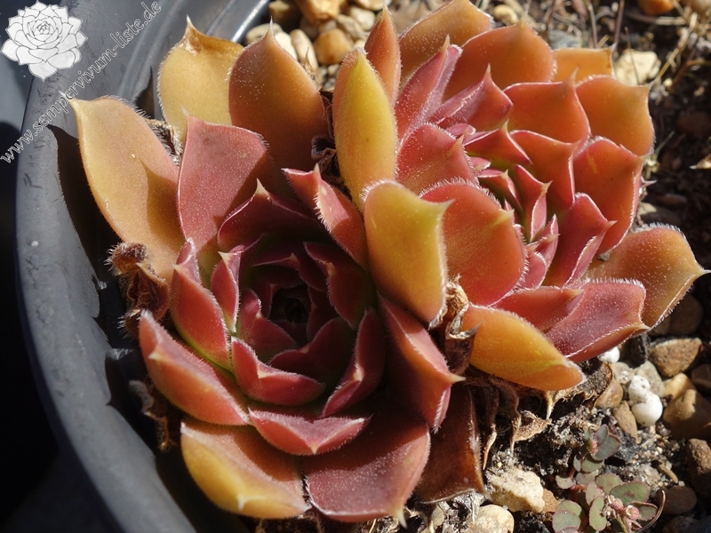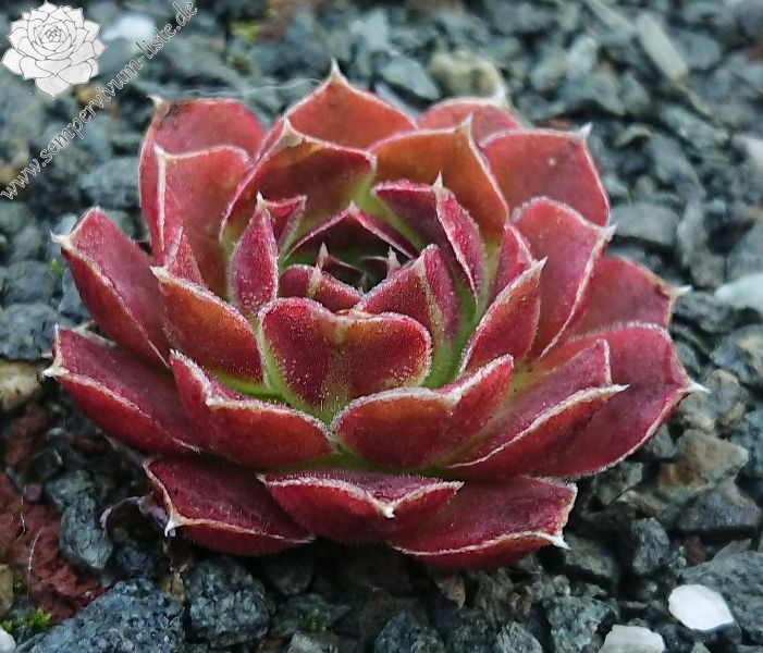 Kleine Rosetten, Blätter oval, lang bespitzt, samtige Substanz, hellrosa - beigerot, Blattränder bewimpert
