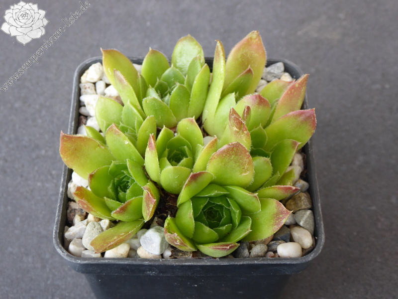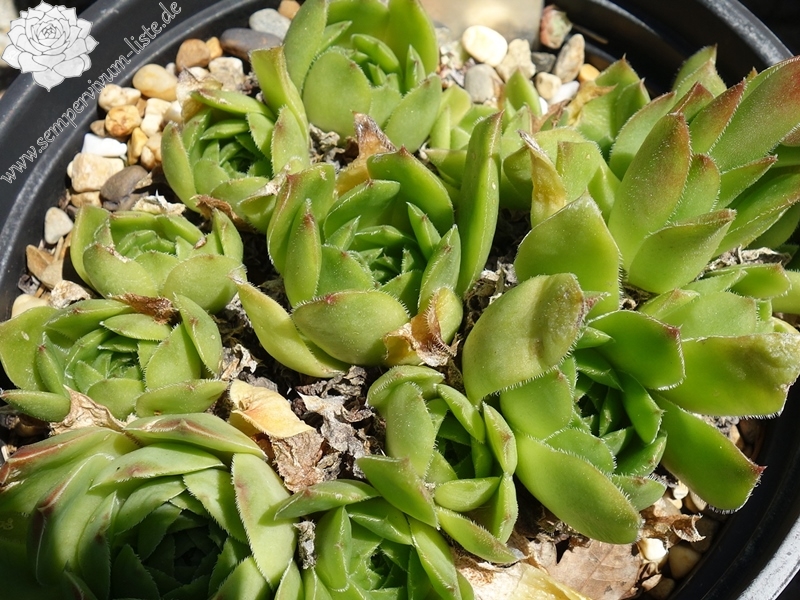Rosetten bis 8 cm, Blätter lanzetlich, lang bespitzt, helles Grünlich - Gelb, wenige braune Spitzen