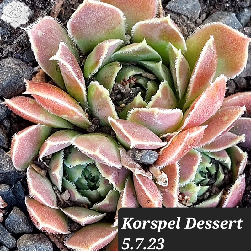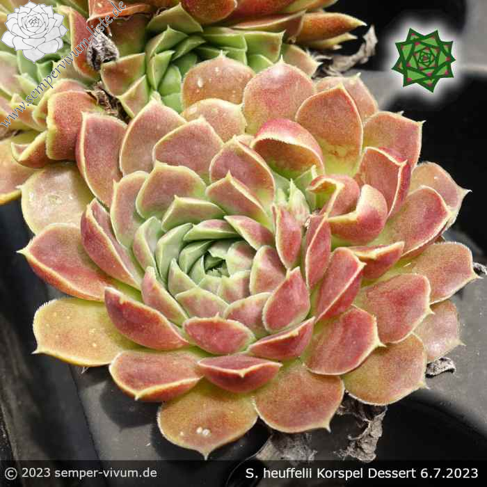 Rosetten bis 5 cm, Blätter eiförmig, kurz bespitzt, grünlich - gelb, rosa überhaucht