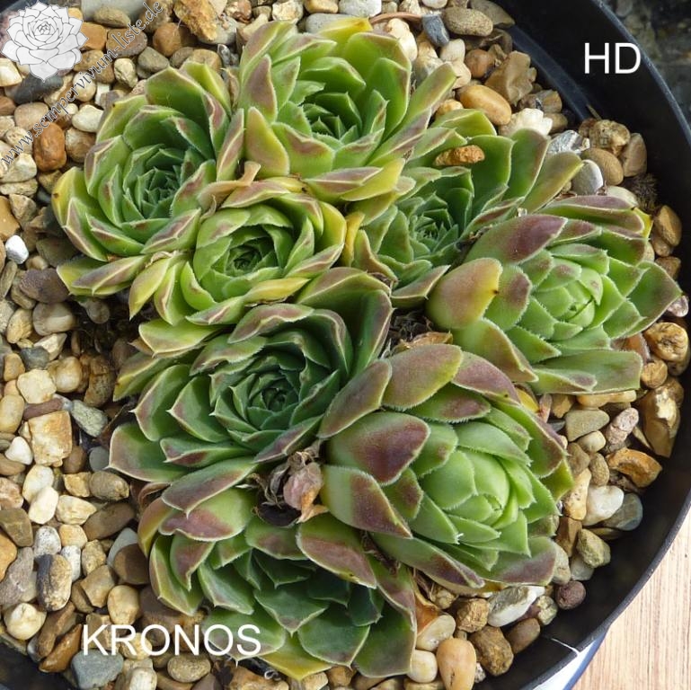 S. cv. Kronos wurde erst Anfang des letzten Jahrzehnts ausgelesen. Es handelt sich um einen eher arttypischen Klon in grüner Farbe und einer hübschen Rosettenform.