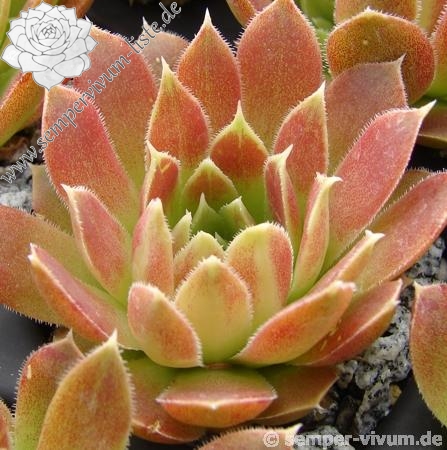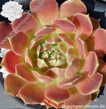 Diesen Zufallssämling vermehren wir nun seit fast 10 Jahren. Hier wird wieder deutlich, wie lange es dauern kann, bis eine neue Sorte einen Platz in Ihrem Garten finden darf. Die Farben spielen mit hellen jadegrünen und kräftigen lachsrosa Tönen. Der Name dieses brillianten Sämlings wurde von unserer Sempervivumfreundin Karin Hacker ausgewählt.