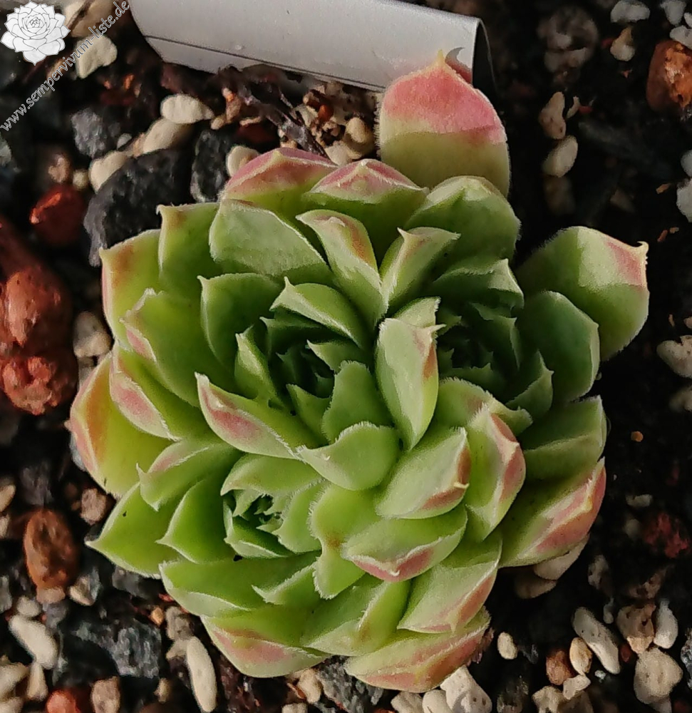 Rosetten bis 7 cm, lindgrün, Blattspitzen teilweise bräunlich panaschiert /