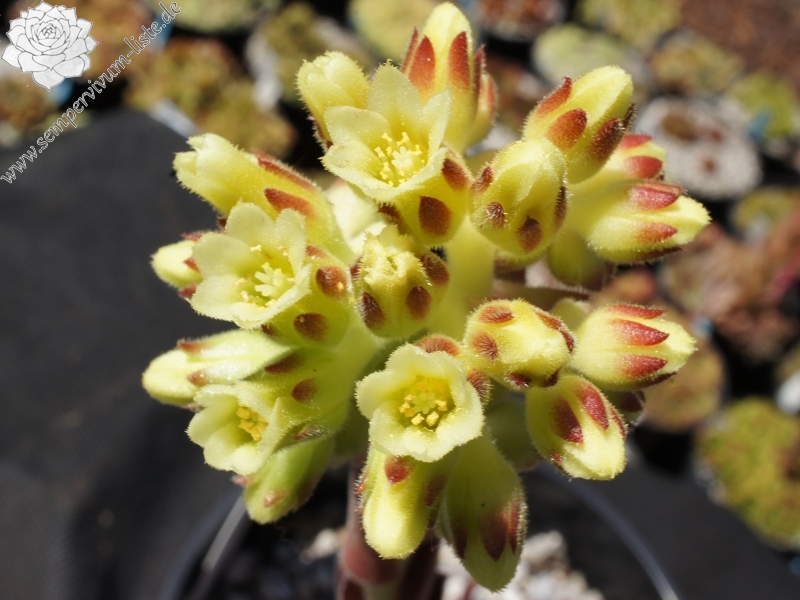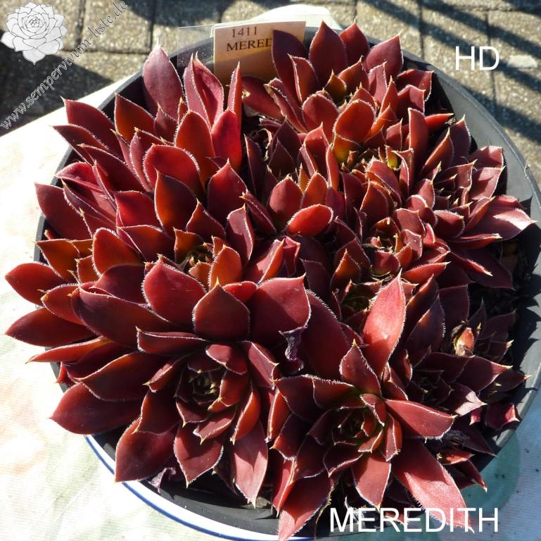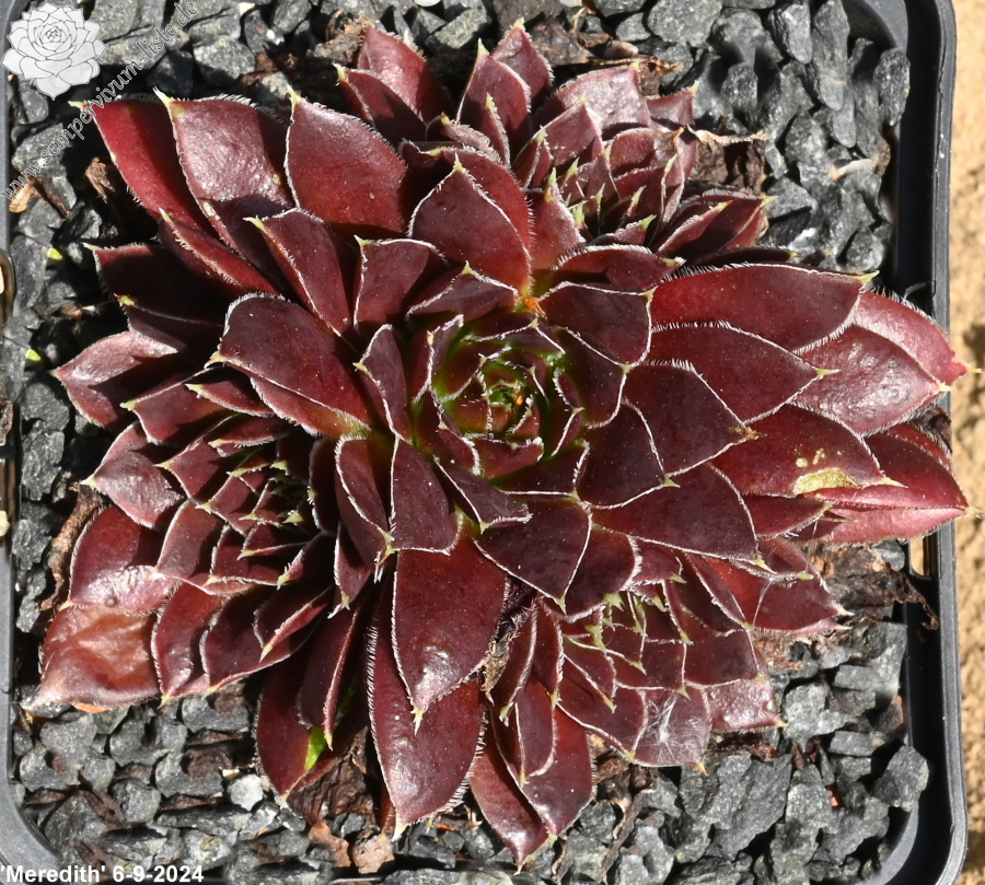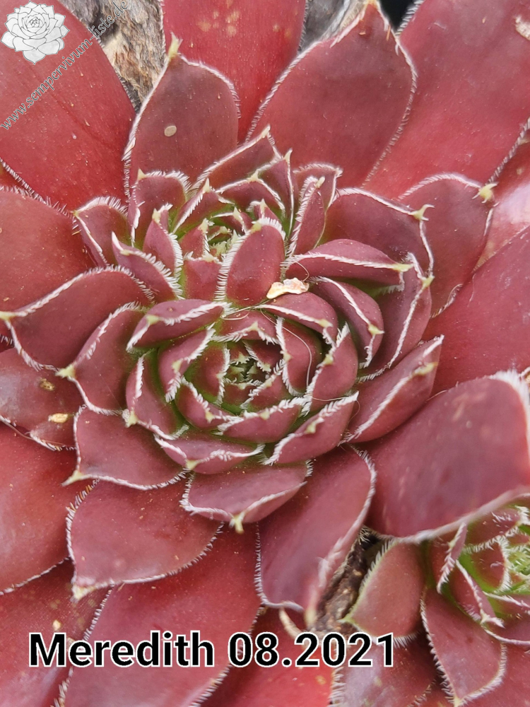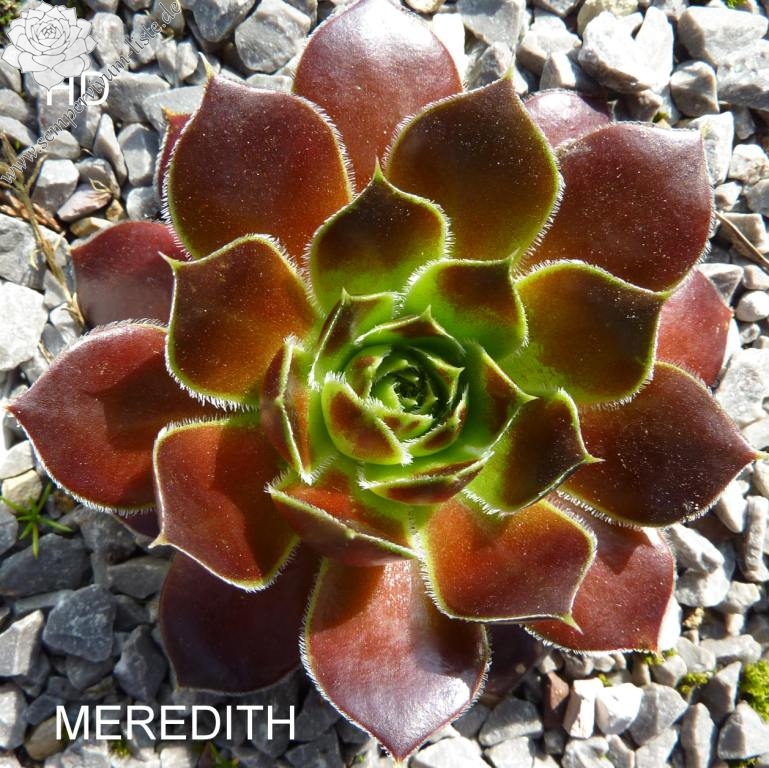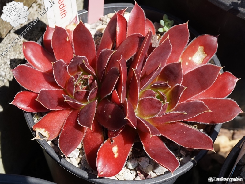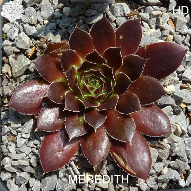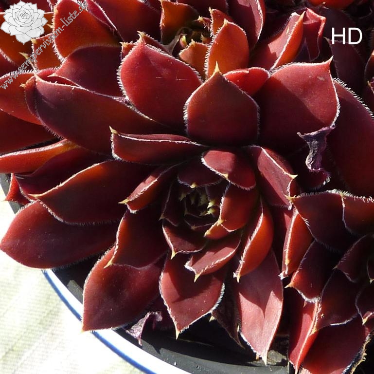 offene Rosetten bis 6 cm, Blätter lanzettlich, lang bespitzt, weinrot, Blattränder silbern bewimpert
