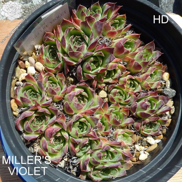 Eine der ersten Klone der in den 70er Jahren von cv. Dark Form in cv. Miller's Violet umbenannt wurde. Graugrüne Blättern mit dunkelvioletten Spitzen formen mittelgroße Rosetten.