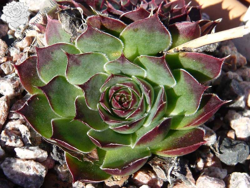kleine Rosetten, Blätter eiförmig, kurz bespitzt, grau - grün , Spitzen helles Rot